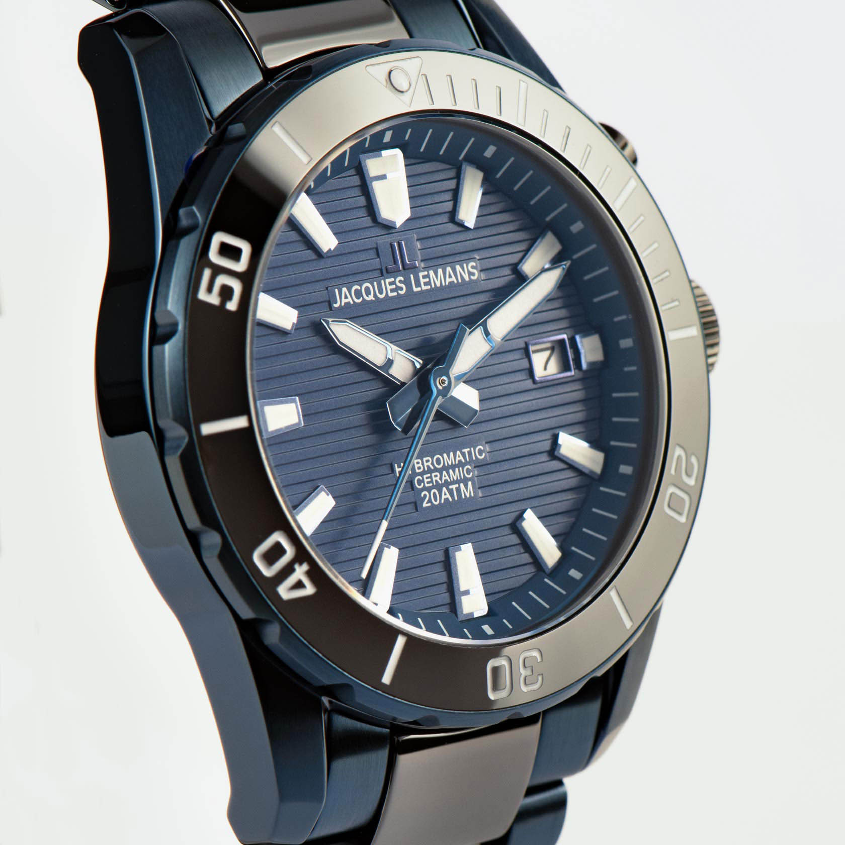Мужские часы Jacques Lemans Venice 1-2222B с сапфировым стекломСапфировое стеклоПрочный и надёжный материал из кристалла сапфира синтетического происхождения, характеризующийся особой твёрдостью и устойчивостью к царапинам и повреждениям., гибрид кварца и механики с автоподзаводом. Лимитированная серия революционных часов Hybromatic: всего выпущено 999 штук каждой модели. Вращающийся безельБезельВнешний ободок, закрепляющий стекло. В спортивных часах так называется поворотное кольцо с делениями на циферблате, выполняет роль таймера – замеряет отрезки времени на шкале. Неподвижный безель – элемент декора. Однонаправленно вращающийся безель на дайверских часах позволяет фиксировать моменты погружения и выныривания на поверхность. из нержавеющей стали с PVDPVDУльтратонкое покрытие наносится в технике вакуумного напыления, сочетает в себе нитрид титана особой прочности со слоем золота или оксида хрома. Несёт в себе декоративную или защитную функцию. покрытием. Стрелки и метки с люминесцентным покрытиемЛюминесцентное покрытиеПозволяет считывать показания времени в темноте. Производители наносят на стрелки, часовые индексы, безель или поверхность циферблата светонакопительный состав, дающий холодное свечение.. Окошко даты расположено в позиции «3 часа». Класс водозащиты: 200 метров, позволит плавать, нырять и заниматься другими водными видами спорта. Прозрачная задняя крышка позволит в подробностях разглядеть необычный механизм. Браслет из нержавеющей стали с PVDPVDУльтратонкое покрытие наносится в технике вакуумного напыления, сочетает в себе нитрид титана особой прочности со слоем золота или оксида хрома. Несёт в себе декоративную или защитную функцию. покрытием и высокотехнологичной керамикиВысокотехнологичная керамикаИнновационный запатентованный Rado материал с гладкой или матовой поверхностью. Керамика за счёт кристаллической структуры обладает повышенной устойчивостью от возникновения царапин. Материал способен принимать температуру тела человека, обеспечивая невероятный комфорт при ношении. на раскладной застёжкеРаскладная застёжкаТакой тип застёжки используется только на браслетах из металла. Она никогда не раскрывается полностью, происходит разделение на 2 и более частей. Раскладывающая застёжка снизит вероятность потери часов к минимуму..