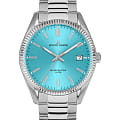 Кварцевый механизм с высокой точностью. Минеральное стеклоМинеральное стеклоМинеральное стекло представляет собой искусственно выращенный минерал кварца. Такое стекло отличается особой устойчивостью к повреждениям и царапинам. Уступает по некоторым качествам сапфировому стеклу. устойчивое к появлению царапин, обладающее высокой прозрачностью. Окошко даты находится в положении 3 часа. Стрелки и метки с люминесцентным покрытиемЛюминесцентное покрытиеПозволяет считывать показания времени в темноте. Производители наносят на стрелки, часовые индексы, безель или поверхность циферблата светонакопительный состав, дающий холодное свечение.. Класс водозащиты: 100 метров, позволит плавать, нырять и заниматься другими водными видами спорта. Корпус часов изготовлен из нержавеющей стали 316L.