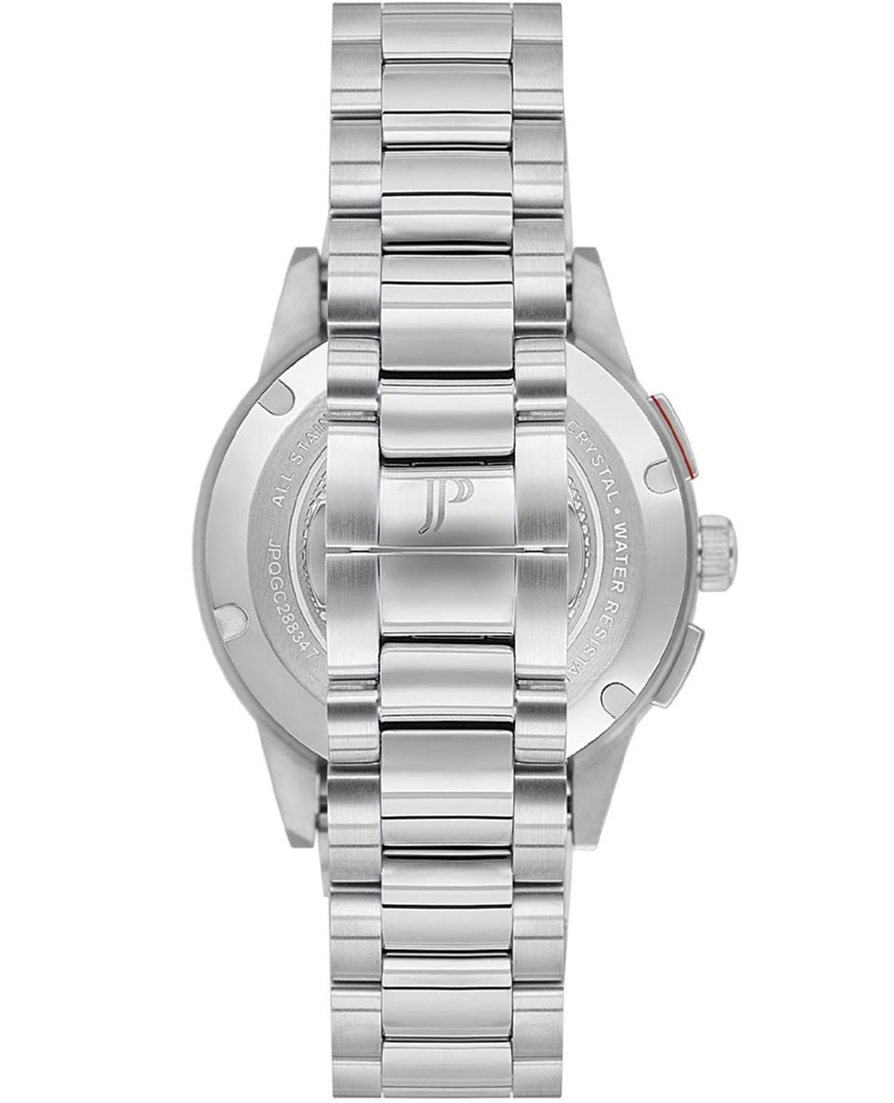Швейцарские мужские часы-хронографХронографФункция позволяет измерять отрезки времени с особой точностью: часы, минуты, секунды. Верным признаком хронографа является наличие на циферблате 3 дополнительных окошек-счётчиков. с секундомеромСекундомерСекундоме́р — прибор, способный измерять интервалы времени с точностью до долей секунды. Jacques Philippe Globus JPQGC288347, кварцевый механизм с высокой точностью. Сапфировое стеклоСапфировое стеклоПрочный и надёжный материал из кристалла сапфира синтетического происхождения, характеризующийся особой твёрдостью и устойчивостью к царапинам и повреждениям. устойчивое к появлению царапин, обладающее высокой прозрачностью. Корпус часов изготовлен из нержавеющей стали. БезельБезельВнешний ободок, закрепляющий стекло. В спортивных часах так называется поворотное кольцо с делениями на циферблате, выполняет роль таймера – замеряет отрезки времени на шкале. Неподвижный безель – элемент декора. Однонаправленно вращающийся безель на дайверских часах позволяет фиксировать моменты погружения и выныривания на поверхность. из стали с тахиметромТахиметрРазмеченная шкала, располагается на ободке или безеле часов. Тахиметр позволяет рассчитать скорость на определённом участке пути, расстояние измеряется в километрах или милях.. На циферблате три дополнительных индикатора. Окошко даты находится в положении 6 часов. Стрелки с люминесцентным покрытиемЛюминесцентное покрытиеПозволяет считывать показания времени в темноте. Производители наносят на стрелки, часовые индексы, безель или поверхность циферблата светонакопительный состав, дающий холодное свечение.. Класс водозащиты: 100 метров, позволит плавать, нырять и заниматься другими водными видами спорта. Стальной браслет на застёжке «бабочка» с кнопкамиЗастёжка "бабочка"Такой вид застёжки дополняется предохранителями, помогающими избежать случайного раскрытия браслета. Обладают изящным исполнением. .