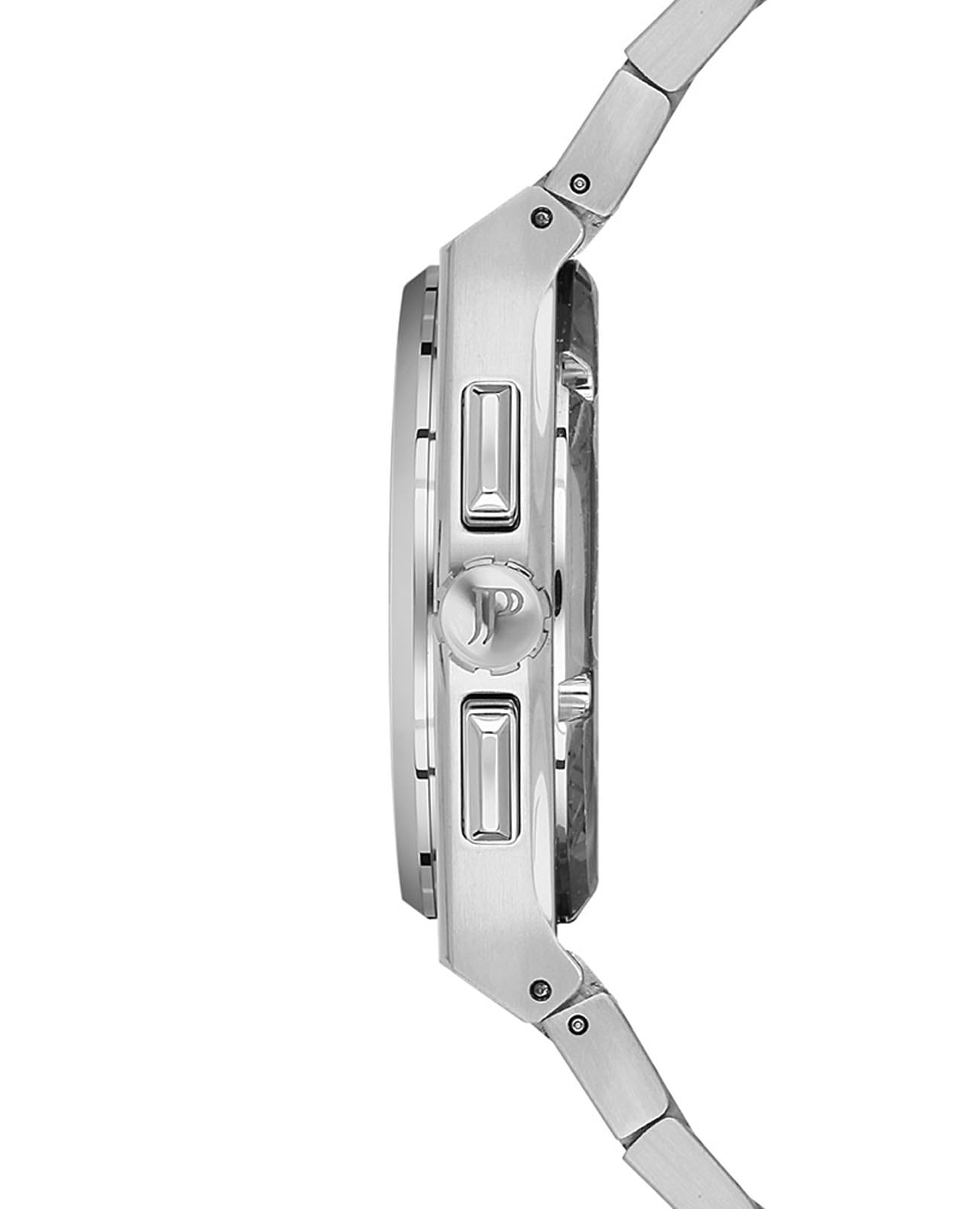 Швейцарские мужские часы-хронографХронографФункция позволяет измерять отрезки времени с особой точностью: часы, минуты, секунды. Верным признаком хронографа является наличие на циферблате 3 дополнительных окошек-счётчиков. с секундомеромСекундомерСекундоме́р — прибор, способный измерять интервалы времени с точностью до долей секунды. Jacques Philippe Aurora JPQGC4113X6, кварцевый механизм с высокой точностью. Сапфировое стеклоСапфировое стеклоПрочный и надёжный материал из кристалла сапфира синтетического происхождения, характеризующийся особой твёрдостью и устойчивостью к царапинам и повреждениям. устойчивое к появлению царапин, обладающее высокой прозрачностью. Корпус часов изготовлен из нержавеющей стали. На циферблате три дополнительных индикатора. Окошко даты находится в положении 4 часа. Стрелки с люминесцентным покрытиемЛюминесцентное покрытиеПозволяет считывать показания времени в темноте. Производители наносят на стрелки, часовые индексы, безель или поверхность циферблата светонакопительный состав, дающий холодное свечение.. Класс водозащиты: 50 метров, позволит защитить корпус от случайных брызг или капель дождя. Стальной браслет на застёжке «бабочка» с кнопкамиЗастёжка "бабочка"Такой вид застёжки дополняется предохранителями, помогающими избежать случайного раскрытия браслета. Обладают изящным исполнением. .