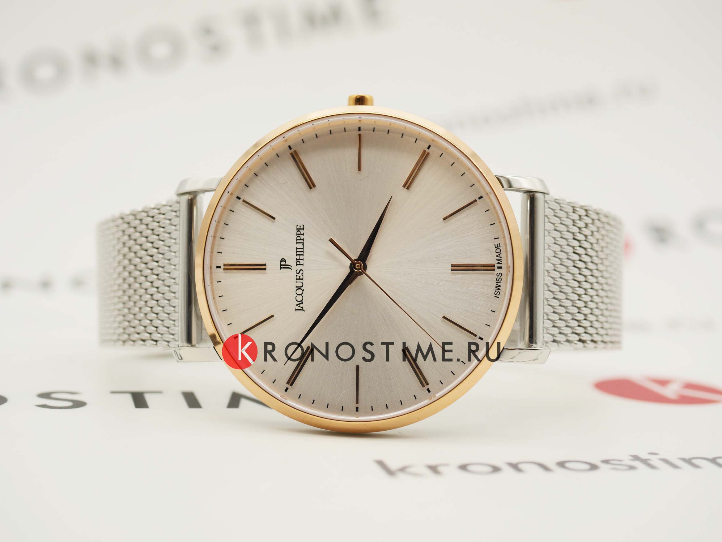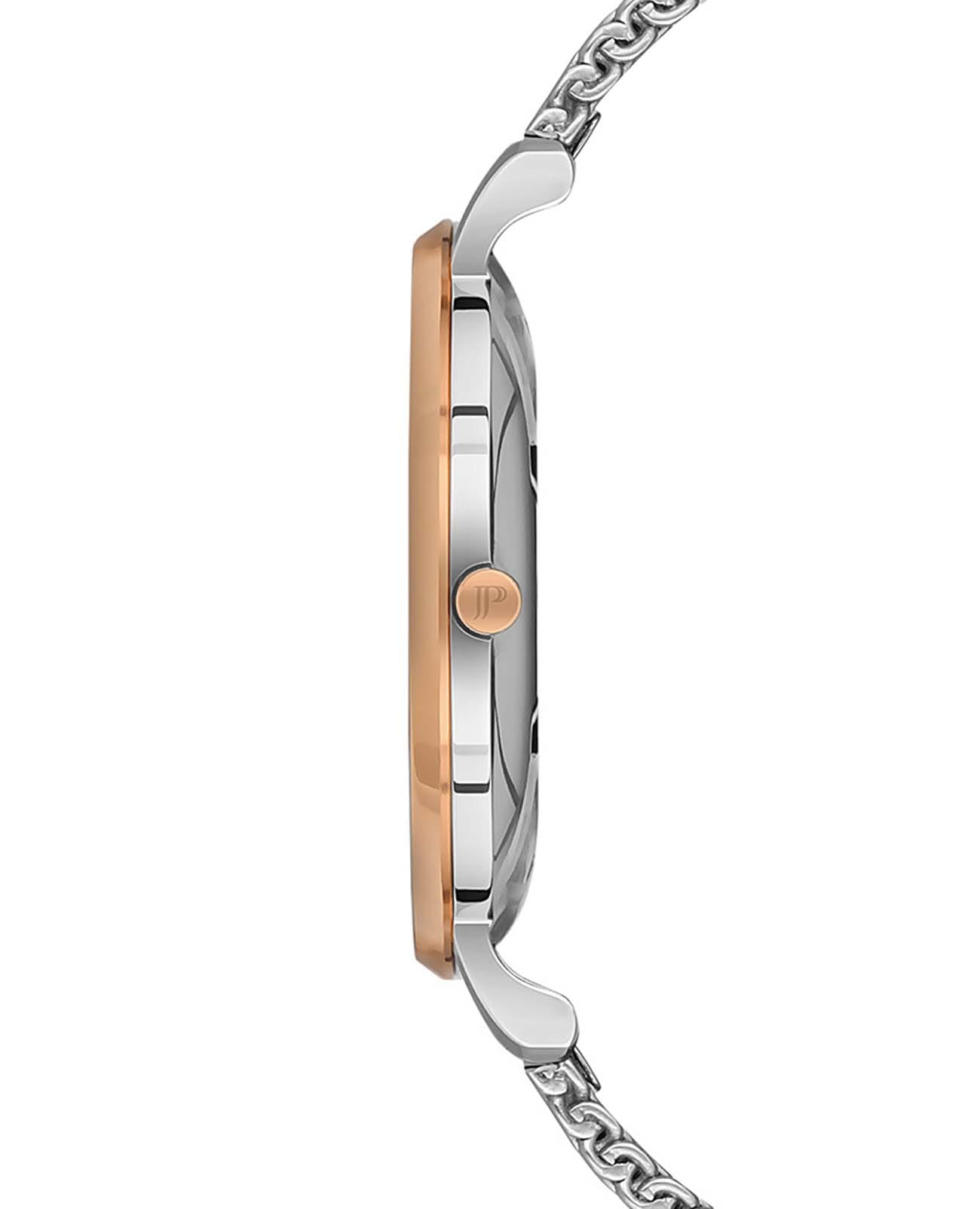 Швейцарские мужские часы Jacques Philippe Base JPQGS077226RG, кварцевый механизм с высокой точностью. Сапфировое стеклоСапфировое стеклоПрочный и надёжный материал из кристалла сапфира синтетического происхождения, характеризующийся особой твёрдостью и устойчивостью к царапинам и повреждениям. устойчивое к появлению царапин, обладающее высокой прозрачностью. Корпус часов изготовлен из нержавеющей стали. Класс водозащиты: 30 метров, позволит защитить корпус от случайных брызг или капель дождя. Стальной браслет на раскладном замкеРаскладной замокДанный вариант застежки используется только на часах с металлическим браслетом. Отличительная особенность такого крепления в том, что длина браслета становится универсальной и вы можете самостоятельно отрегулировать нужный вам размер – застежка просто двигается по браслету часов.. БезельБезельВнешний ободок, закрепляющий стекло. В спортивных часах так называется поворотное кольцо с делениями на циферблате, выполняет роль таймера – замеряет отрезки времени на шкале. Неподвижный безель – элемент декора. Однонаправленно вращающийся безель на дайверских часах позволяет фиксировать моменты погружения и выныривания на поверхность. с PVD-покрытиемPVDУльтратонкое покрытие наносится в технике вакуумного напыления, сочетает в себе нитрид титана особой прочности со слоем золота или оксида хрома. Несёт в себе декоративную или защитную функцию..