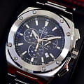 Мужские швейцарские часы-хронографХронографФункция позволяет измерять отрезки времени с особой точностью: часы, минуты, секунды. Верным признаком хронографа является наличие на циферблате 3 дополнительных окошек-счётчиков. Jaguar Executive Chrono J805/B. Кварцевый швейцарский калибр Ronda 5030d. Сапфировое стеклоСапфировое стеклоПрочный и надёжный материал из кристалла сапфира синтетического происхождения, характеризующийся особой твёрдостью и устойчивостью к царапинам и повреждениям. устойчивое к мелким механическим повреждениям. Корпус и браслет часов изготовлены из нержавеющей стали. Стрелки и метки с люминесцентным покрытиемЛюминесцентное покрытиеПозволяет считывать показания времени в темноте. Производители наносят на стрелки, часовые индексы, безель или поверхность циферблата светонакопительный состав, дающий холодное свечение.. Окошко даты находится в положении между «4» и «5 часами». Класс водозащиты: 50 метров, позволит защитить корпус от случайных брызг или капель дождя. Стальной браслет на раскладной застёжкеРаскладная застёжкаТакой тип застёжки используется только на браслетах из металла. Она никогда не раскрывается полностью, происходит разделение на 2 и более частей. Раскладывающая застёжка снизит вероятность потери часов к минимуму..