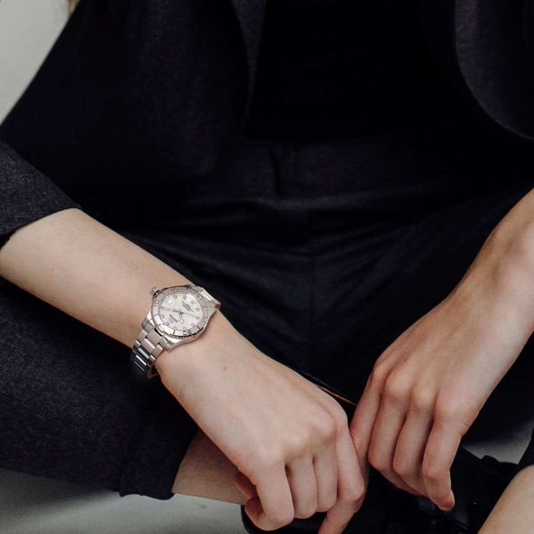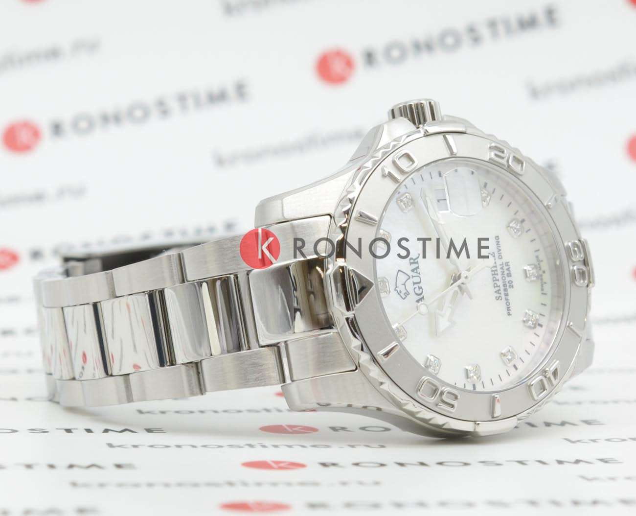 Женские швейцарские часы Jaguar Couple Diver J870/1. Кварцевый швейцарский калибр Ronda 705. Сапфировое стеклоСапфировое стеклоПрочный и надёжный материал из кристалла сапфира синтетического происхождения, характеризующийся особой твёрдостью и устойчивостью к царапинам и повреждениям. устойчивое к мелким механическим повреждениям. Корпус и браслет часов изготовлены из нержавеющей стали. Стрелки с люминесцентным покрытиемЛюминесцентное покрытиеПозволяет считывать показания времени в темноте. Производители наносят на стрелки, часовые индексы, безель или поверхность циферблата светонакопительный состав, дающий холодное свечение.. Окошко даты находится в положении 3 часа. Класс водозащиты: 200 метров, позволит плавать, нырять и заниматься другими водными видами спорта. Стальной браслет на раскладной застёжкеРаскладная застёжкаТакой тип застёжки используется только на браслетах из металла. Она никогда не раскрывается полностью, происходит разделение на 2 и более частей. Раскладывающая застёжка снизит вероятность потери часов к минимуму.. Циферблат украшен 11 кристаллами в роли часовых индексов.