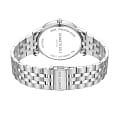 Kenneth Cole KCWGH0046904 — стильные мужские часы, сочетающие современный дизайн и функциональность. Корпус диаметром 42 мм выполнен из нержавеющей стали, что обеспечивает долговечность и элегантный внешний вид. Минеральное стеклоМинеральное стеклоМинеральное стекло представляет собой искусственно выращенный минерал кварца. Такое стекло отличается особой устойчивостью к повреждениям и царапинам. Уступает по некоторым качествам сапфировому стеклу. защищает циферблат от царапин. Синий текстурированный циферблат с аналоговой индикацией дополнен окошком даты на отметке «3 часа», подчёркивая функциональность модели. Часы оснащены кварцевым механизмом, обеспечивающим точность хода. Водозащита до 3 ATM (30 метров) делает их подходящими для повседневного использования, но не для плавания или погружения в воду. Браслет из нержавеющей стали с раскладной застёжкойРаскладная застёжкаТакой тип застёжки используется только на браслетах из металла. Она никогда не раскрывается полностью, происходит разделение на 2 и более частей. Раскладывающая застёжка снизит вероятность потери часов к минимуму. гарантирует комфортное ношение и надёжную фиксацию. Kenneth Cole KCWGH0046904 — это идеальный выбор для мужчин, ценящих стиль и надёжность.