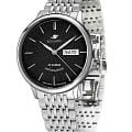 Российские мужские механические часы Космос K 043.19.31 из коллекции Юпитер оснащены механизмом TMI с автоподзаводом. Круглый корпус из нержавеющей стали диаметром 41 мм защищен минеральным стекломМинеральное стеклоМинеральное стекло представляет собой искусственно выращенный минерал кварца. Такое стекло отличается особой устойчивостью к повреждениям и царапинам. Уступает по некоторым качествам сапфировому стеклу.. Черный циферблат с элементами стального цвета дополнен функциями отображения даты и дня недели. Часы имеют водонепроницаемость 50 метров, позволит защитить корпус от случайных брызг или капель дождя. Модель комплектуется стальным браслетом на застёжке-бабочке с кнопкамиЗастёжка "бабочка"Такой вид застёжки дополняется предохранителями, помогающими избежать случайного раскрытия браслета. Обладают изящным исполнением. . Прочный корпус и надежный механизм делают эти часы универсальным аксессуаром для повседневного использования. Уникальный дизайн и высокое качество материалов подчеркивают индивидуальность владельца.