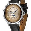 Российские кварцевые часы Космос K067.11.30 из коллекции Сатурн оснащены механизмом калибра Miyota. Круглый корпус из стали диаметром 41 мм защищен минеральным стекломМинеральное стеклоМинеральное стекло представляет собой искусственно выращенный минерал кварца. Такое стекло отличается особой устойчивостью к повреждениям и царапинам. Уступает по некоторым качествам сапфировому стеклу. повышенной прочности. Коричневый циферблат дополнен функциями отображения даты центральной стрелкой, дня недели, месяца и фаз Луны. Стрелки с люминесцентным покрытиемЛюминесцентное покрытиеПозволяет считывать показания времени в темноте. Производители наносят на стрелки, часовые индексы, безель или поверхность циферблата светонакопительный состав, дающий холодное свечение. обеспечивают хорошую видимость в темное время суток. Часы имеют водонепроницаемость 50 метров, позволит защитить корпус от случайных брызг или капель дождя. Модель комплектуется кожаным ремешком на стандартной застежке. Практичный и стильный дизайн делает эти часы идеальным выбором для современного ритма жизни, сочетая в себе функциональность и элегантность.