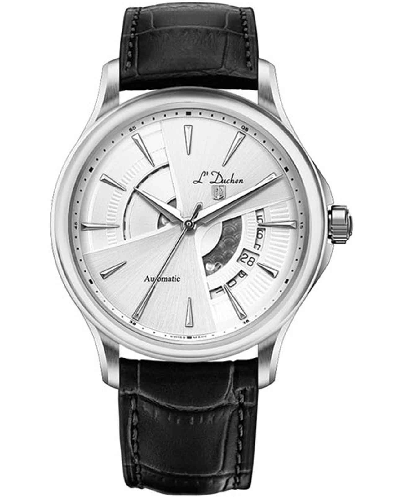 Мужские механические швейцарские часы с автоподзаводом LDuchen Quazar D 153.11.33, кварцевый механизм с высокой точностью. Сапфировое стеклоСапфировое стеклоПрочный и надёжный материал из кристалла сапфира синтетического происхождения, характеризующийся особой твёрдостью и устойчивостью к царапинам и повреждениям. устойчивое к появлению царапин, обладающее высокой прозрачностью. Корпус часов выполнен из нержавеющей стали. Класс водозащиты: 50 метров, позволит защитить корпус от случайных брызг или капель дождя. Кожаный ремешок на раскладной застёжкеРаскладная застёжкаТакой тип застёжки используется только на браслетах из металла. Она никогда не раскрывается полностью, происходит разделение на 2 и более частей. Раскладывающая застёжка снизит вероятность потери часов к минимуму..