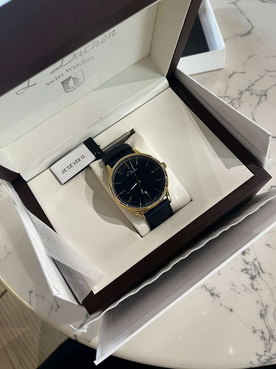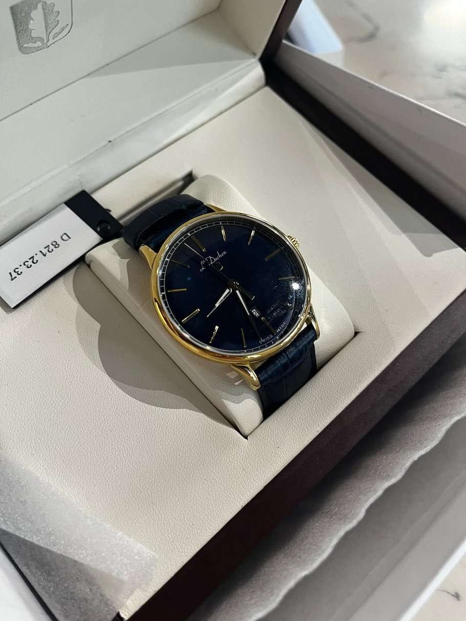 Мужские швейцарские часы L'Duchen Vintage D 821.23.37, кварцевый механизм с высокой точностью. Сапфировое стеклоСапфировое стеклоПрочный и надёжный материал из кристалла сапфира синтетического происхождения, характеризующийся особой твёрдостью и устойчивостью к царапинам и повреждениям. устойчивое к появлению царапин, обладающее высокой прозрачностью. Корпус часов выполнен из нержавеющей стали с PVD-покрытиемPVDУльтратонкое покрытие наносится в технике вакуумного напыления, сочетает в себе нитрид титана особой прочности со слоем золота или оксида хрома. Несёт в себе декоративную или защитную функцию.. Стрелки с люминесцентным покрытиемЛюминесцентное покрытиеПозволяет считывать показания времени в темноте. Производители наносят на стрелки, часовые индексы, безель или поверхность циферблата светонакопительный состав, дающий холодное свечение.. Окошко даты находится в положении 6 часов. Класс водозащиты: 50 метров, позволит защитить корпус от случайных брызг или капель дождя. Кожаный ремешок на застёжке «бабочка» с кнопкамиЗастёжка "бабочка"Такой вид застёжки дополняется предохранителями, помогающими избежать случайного раскрытия браслета. Обладают изящным исполнением. .
