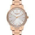 Женские часы Lee Cooper LC07229.410 — это стильное сочетание элегантности и современного дизайна. Круглый корпус диаметром 34 мм выполнен из металла с IP-покрытиемIP-покрытиеМетод ионного напыления. Демонстрирует повышенную устойчивость к истиранию, окислению и химическим веществам. Под воздействием высокого давления и температуры около 1500°C молекулы металла надёжно соединяются с частицами корпуса часов. в розово-золотом оттенке, а безельБезельВнешний ободок, закрепляющий стекло. В спортивных часах так называется поворотное кольцо с делениями на циферблате, выполняет роль таймера – замеряет отрезки времени на шкале. Неподвижный безель – элемент декора. Однонаправленно вращающийся безель на дайверских часах позволяет фиксировать моменты погружения и выныривания на поверхность. украшен кристаллами, придающими модели особый блеск. Серебристый циферблат защищен минеральным стекломМинеральное стеклоМинеральное стекло представляет собой искусственно выращенный минерал кварца. Такое стекло отличается особой устойчивостью к повреждениям и царапинам. Уступает по некоторым качествам сапфировому стеклу., обеспечивающим устойчивость к царапинам. Часы оснащены надежным кварцевым механизмом, а металлический браслет с раскладной застёжкойРаскладная застёжкаТакой тип застёжки используется только на браслетах из металла. Она никогда не раскрывается полностью, происходит разделение на 2 и более частей. Раскладывающая застёжка снизит вероятность потери часов к минимуму. гарантирует комфортную посадку на запястье. Водозащита 30 метров защищает модель от случайных брызг и дождя. Lee Cooper LC07229.410 — отличный выбор для тех, кто ценит утонченность и качество.