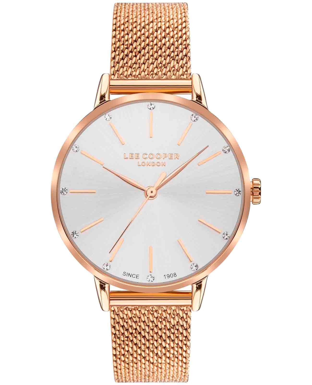 Женские наручные часы Lee Cooper LC07473.430 — это сочетание элегантности и практичности. Изготавливаемые с учетом современных технологий, эти часы имеют износоустойчивый корпус из суперметалла диаметром 34 мм выполнен из нержавеющей стали с IP-покрытиемIP-покрытиеМетод ионного напыления. Демонстрирует повышенную устойчивость к истиранию, окислению и химическим веществам. Под воздействием высокого давления и температуры около 1500°C молекулы металла надёжно соединяются с частицами корпуса часов.. Серебристый циферблат украшен изящными вставками из кристаллов в виде меток и стрелками обеспечивая удобное считывание времени. Циферблат защищён минеральным стекломМинеральное стеклоМинеральное стекло представляет собой искусственно выращенный минерал кварца. Такое стекло отличается особой устойчивостью к повреждениям и царапинам. Уступает по некоторым качествам сапфировому стеклу., устойчивым к царапинам. Часы работают на кварцевом механизме, обеспечивая точность хода. Браслет из нержавеющей стали с раскладной застёжкойРаскладная застёжкаТакой тип застёжки используется только на браслетах из металла. Она никогда не раскрывается полностью, происходит разделение на 2 и более частей. Раскладывающая застёжка снизит вероятность потери часов к минимуму. гарантирует комфортное ношение и надёжную фиксацию на запястье. Водозащита 30 метров защищает часы от случайных брызг и дождя, делая их подходящими для повседневного использования.