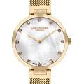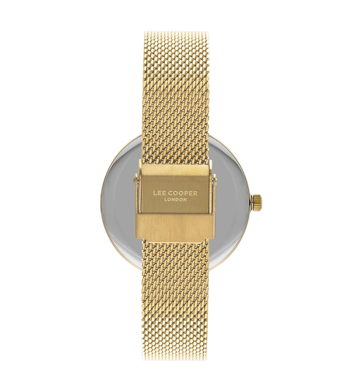 Женские часы Lee Cooper LC07806.120 выполнены в классическом стиле и сочетают строгий дизайн с надёжным механизмом. Модель оснащена кварцевым механизмом, обеспечивающим точность хода и минимальное обслуживание. Корпус круглой формы имеет размер 36 мм, изготовлен из суперметалла с IP-покрытиемIP-покрытиеМетод ионного напыления. Демонстрирует повышенную устойчивость к истиранию, окислению и химическим веществам. Под воздействием высокого давления и температуры около 1500°C молекулы металла надёжно соединяются с частицами корпуса часов., браслет — стальной миланского плетения с IP-покрытиемIP-покрытиеМетод ионного напыления. Демонстрирует повышенную устойчивость к истиранию, окислению и химическим веществам. Под воздействием высокого давления и температуры около 1500°C молекулы металла надёжно соединяются с частицами корпуса часов. с раскладным замкомРаскладной замокДанный вариант застежки используется только на часах с металлическим браслетом. Отличительная особенность такого крепления в том, что длина браслета становится универсальной и вы можете самостоятельно отрегулировать нужный вам размер – застежка просто двигается по браслету часов., что гарантирует комфорт при ношении. Изысканный циферблат дополнен индексами для чёткого отсчёта времени. Защиту циферблата обеспечивает минеральное стеклоМинеральное стеклоМинеральное стекло представляет собой искусственно выращенный минерал кварца. Такое стекло отличается особой устойчивостью к повреждениям и царапинам. Уступает по некоторым качествам сапфировому стеклу., устойчивое к мелким механическим повреждениям. Водозащита 3 АТМ позволяет использовать часы в повседневных условиях без риска повреждения от случайных брызг воды. В комплекте с часами идут два ожерелья. Это сочетание классического дизайна, прочности материалов и качества исполнения для уверенных в себе женщин.