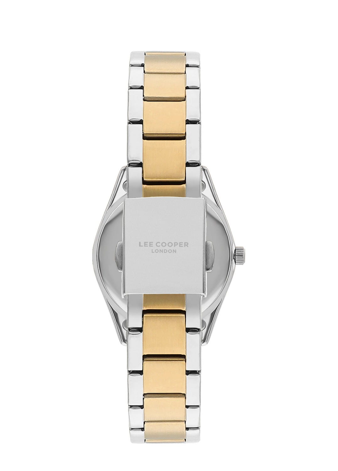 Женские часы Lee Cooper LC07868.220 выполнены в классическом стиле и сочетают строгий дизайн с надёжным механизмом. Модель оснащена кварцевым механизмом, обеспечивающим точность хода и минимальное обслуживание. Изящный корпус изготовлен из суперметалла, гарантирует комфорт при ношении. Неповоротный безельБезельВнешний ободок, закрепляющий стекло. В спортивных часах так называется поворотное кольцо с делениями на циферблате, выполняет роль таймера – замеряет отрезки времени на шкале. Неподвижный безель – элемент декора. Однонаправленно вращающийся безель на дайверских часах позволяет фиксировать моменты погружения и выныривания на поверхность. с IP-покрытиемIP-покрытиеМетод ионного напыления. Демонстрирует повышенную устойчивость к истиранию, окислению и химическим веществам. Под воздействием высокого давления и температуры около 1500°C молекулы металла надёжно соединяются с частицами корпуса часов.. Изысканный циферблат дополнен штрихами и римскими цифрами для чёткого отсчёта времени. Защиту циферблата обеспечивает минеральное стеклоМинеральное стеклоМинеральное стекло представляет собой искусственно выращенный минерал кварца. Такое стекло отличается особой устойчивостью к повреждениям и царапинам. Уступает по некоторым качествам сапфировому стеклу., устойчивое к мелким механическим повреждениям. Стальной браслет с частичным IP-покрытиемIP-покрытиеМетод ионного напыления. Демонстрирует повышенную устойчивость к истиранию, окислению и химическим веществам. Под воздействием высокого давления и температуры около 1500°C молекулы металла надёжно соединяются с частицами корпуса часов. на раскладной застёжкеРаскладная застёжкаТакой тип застёжки используется только на браслетах из металла. Она никогда не раскрывается полностью, происходит разделение на 2 и более частей. Раскладывающая застёжка снизит вероятность потери часов к минимуму. гарантирует удобную посадку и надёжную фиксацию на запястье. Метки с люминесцентным покрытиемЛюминесцентное покрытиеПозволяет считывать показания времени в темноте. Производители наносят на стрелки, часовые индексы, безель или поверхность циферблата светонакопительный состав, дающий холодное свечение., обеспечивающим хорошую читаемость в темноте. Водозащита 30WR позволяет использовать часы в повседневных условиях без риска повреждения от случайных брызг воды. Это сочетание классического дизайна, прочности материалов и качества исполнения для уверенных в себе женщин.