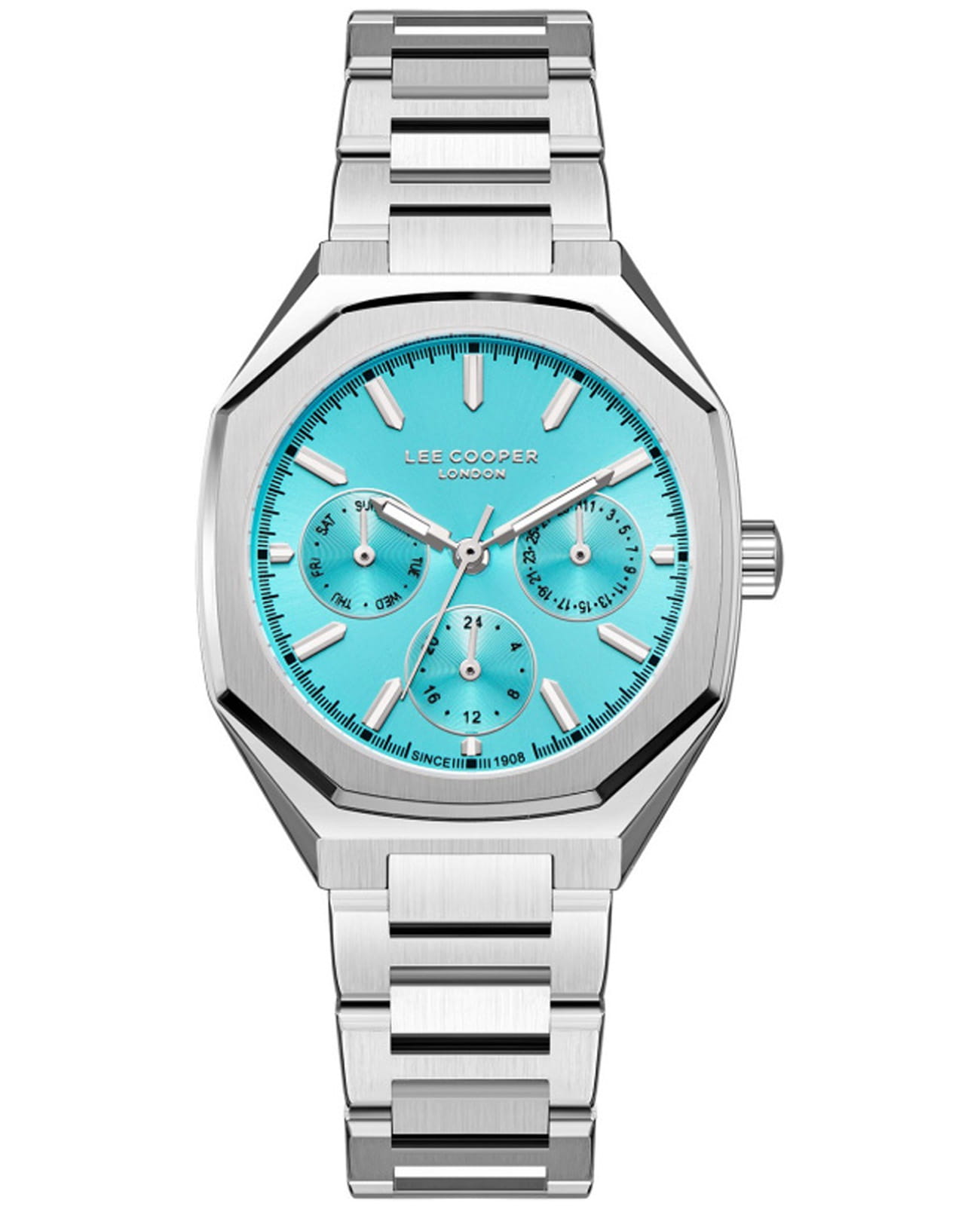 Женские наручные часы LEE COOPER LC08046.300 из коллекции Contemporary оснащены точным кварцевым механизмом, обеспечивающим высокую надежность и точность хода. Корпус часов изготовлен из суперметалла, что гарантирует долговечность и устойчивость к повреждениям. Три субдисплея с серебристой окантовкой отображают дату, день недели и 24-часовой формат времени, что добавляет функциональности и практичности. Для защиты циферблата используется , устойчивое к царапинам и механическим повреждениям. Интегрированный браслет изготовлен из нержавеющей стали, которая славится своей долговечностью и возможностью полировки. Браслет гармонично дополняет дизайн часов и обеспечивает комфортное ношение в течение дня благодаря раскладной застёжкеРаскладная застёжкаТакой тип застёжки используется только на браслетах из металла. Она никогда не раскрывается полностью, происходит разделение на 2 и более частей. Раскладывающая застёжка снизит вероятность потери часов к минимуму.. Эти часы сочетают в себе стиль и функциональность, что делает их универсальным аксессуаром, подходящим к любому образу. Модель станет прекрасным подарком. Часы обладают водонепроницаемостью до 30 метров (3 АТМ), что позволяет использовать их в повседневной жизни, включая контакт с водой при мытье рук или дожде.
