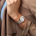 Швейцарский кварцевый калибр L156 — сердце этих часов, которое бьется с безупречной точностью. Сапфировое стеклоСапфировое стеклоПрочный и надёжный материал из кристалла сапфира синтетического происхождения, характеризующийся особой твёрдостью и устойчивостью к царапинам и повреждениям., покрытое многослойным антибликовым покрытиемАнтибликовое покрытиеСлой оксида металла в 0,13-0,3 микрон, благодаря которому стекло часов не бликует и не отражает свет. Антибликовое покрытие уменьшает отражение света в 10 раз, обеспечивая отличную читаемость показателей циферблата., защищает циферблат от внешних воздействий и позволяет наслаждаться его красотой даже при ярком солнечном свете. Стальной браслет с частичным PVD-покрытиемPVDУльтратонкое покрытие наносится в технике вакуумного напыления, сочетает в себе нитрид титана особой прочности со слоем золота или оксида хрома. Несёт в себе декоративную или защитную функцию. на застёжке «бабочка» с кнопкамиЗастёжка "бабочка"Такой вид застёжки дополняется предохранителями, помогающими избежать случайного раскрытия браслета. Обладают изящным исполнением.
