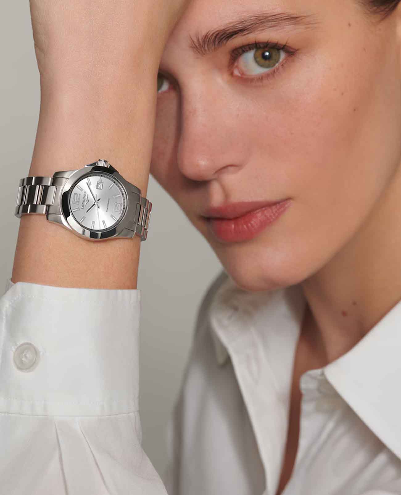 Женские кварцевые швейцарские часы Longines Conquest L3.376.4.76.6 – это гармоничное сочетание делового стиля и элегантности, созданное специально для современных женщин, ценящих одновременно строгость и изысканность.Корпус из нержавеющей стали, защищенный стойким PVD-покрытиемPVDУльтратонкое покрытие наносится в технике вакуумного напыления, сочетает в себе нитрид титана особой прочности со слоем золота или оксида хрома. Несёт в себе декоративную или защитную функцию., демонстрирует надежность и прочность, свойственные спортивным моделям, но при этом сохраняет элегантность, необходимую для офисного дресс-кода.