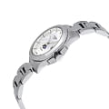 Минималистичный перламутровый циферблат декорирован драгоценными камнями, использовано 11 бриллиантов весом в 0,036 карата. Швейцарский кварцевый калибр L296 измеряет время с высокой точностью. Стекло из сапфира имеет многослойное антибликовое покрытиеАнтибликовое покрытиеСлой оксида металла в 0,13-0,3 микрон, благодаря которому стекло часов не бликует и не отражает свет. Антибликовое покрытие уменьшает отражение света в 10 раз, обеспечивая отличную читаемость показателей циферблата.. Корпус и браслет выполнены из нержавеющей стали 316L. Функции: отображение даты, индикатор EOLEOLПредставляет собой систему, уведомляющую владельца часов о необходимости замены элемента питания. За 2 недели до полного разряда батарейки секундная стрелка перестаёт ходить чётко и начинает перепрыгивать на 3-4 деления., индикация фаз луны.