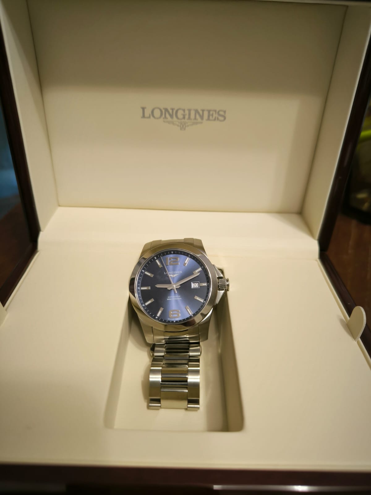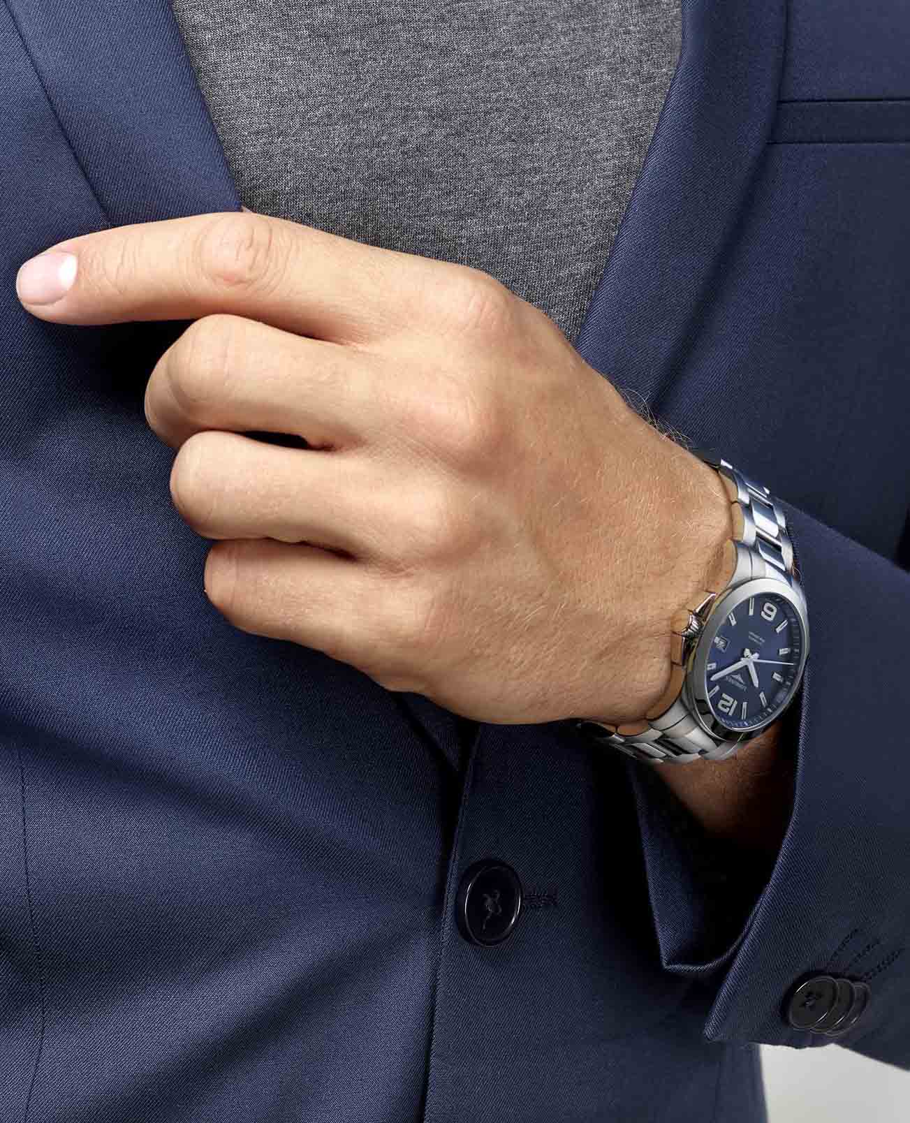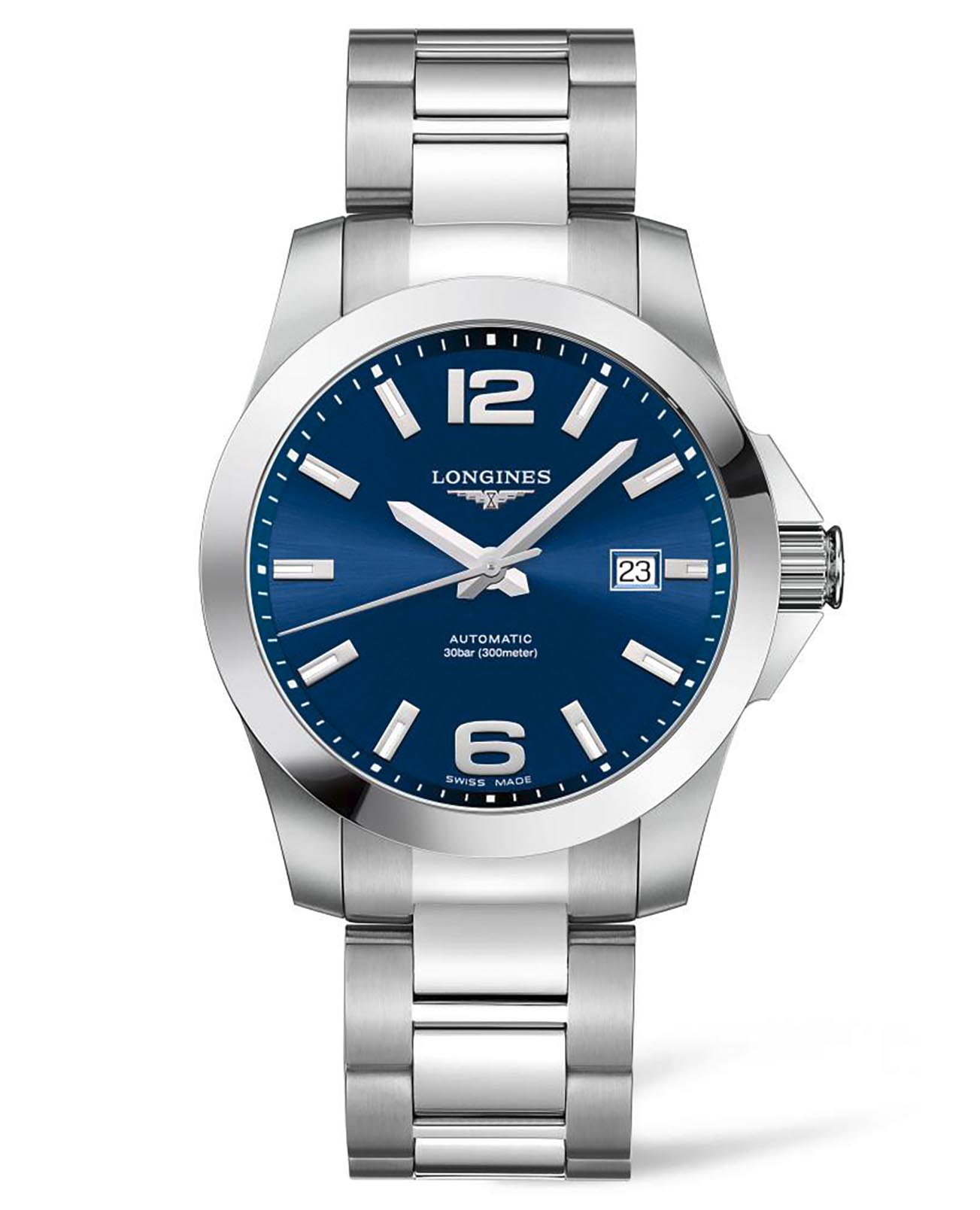 ​​Часы Longines Conquest L3.777.4.99.6 сочетают элегантный дизайн и высокую функциональность. Корпус диаметром 41 мм выполнен из нержавеющей стали, а синий циферблат защищён Сапфировым стекломСапфировое стеклоПрочный и надёжный материал из кристалла сапфира синтетического происхождения, характеризующийся особой твёрдостью и устойчивостью к царапинам и повреждениям. с антибликовым покрытиемАнтибликовое покрытиеСлой оксида металла в 0,13-0,3 микрон, благодаря которому стекло часов не бликует и не отражает свет. Антибликовое покрытие уменьшает отражение света в 10 раз, обеспечивая отличную читаемость показателей циферблата., обеспечивающим отличную читаемость при любом освещении. ​​