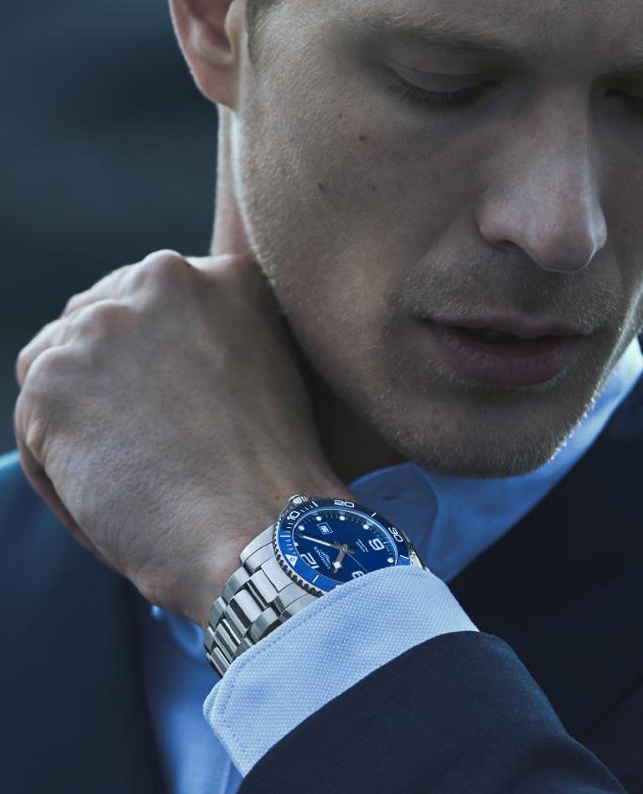 Швейцарские механические часы для дайвинга Longines HydroConquest L3.781.4.96.6. Сапфировое стеклоСапфировое стеклоПрочный и надёжный материал из кристалла сапфира синтетического происхождения, характеризующийся особой твёрдостью и устойчивостью к царапинам и повреждениям. с многослойным антибликовым покрытием с обеих сторон, устойчивое к появлению царапин, обладающее высокой прозрачностью. Корпус часов изготовлен из нержавеющей стали. Вращающийся безельБезельВнешний ободок, закрепляющий стекло. В спортивных часах так называется поворотное кольцо с делениями на циферблате, выполняет роль таймера – замеряет отрезки времени на шкале. Неподвижный безель – элемент декора. Однонаправленно вращающийся безель на дайверских часах позволяет фиксировать моменты погружения и выныривания на поверхность. из стали и керамики, защищенный от царапин, никогда не изнашивается и не выцветает. Стрелки и метки с люминесцентным покрытиемЛюминесцентное покрытиеПозволяет считывать показания времени в темноте. Производители наносят на стрелки, часовые индексы, безель или поверхность циферблата светонакопительный состав, дающий холодное свечение.. Окошко даты находится в положении 3 часов. Класс водозащиты: 300 метров, позволит плавать, нырять и заниматься другими водными видами спорта. Стальной браслет на раскладной застёжкеРаскладная застёжкаТакой тип застёжки используется только на браслетах из металла. Она никогда не раскрывается полностью, происходит разделение на 2 и более частей. Раскладывающая застёжка снизит вероятность потери часов к минимуму..