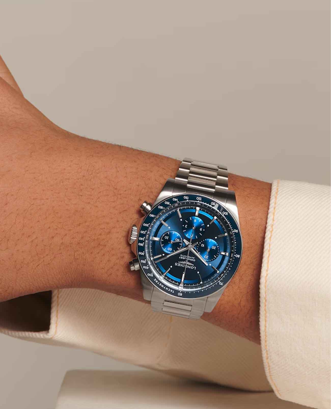 Мужские швейцарские механические часы- хронографХронографФункция позволяет измерять отрезки времени с особой точностью: часы, минуты, секунды. Верным признаком хронографа является наличие на циферблате 3 дополнительных окошек-счётчиков. Longines Conquest L3.835.4.92.6. Сапфировое стеклоСапфировое стеклоПрочный и надёжный материал из кристалла сапфира синтетического происхождения, характеризующийся особой твёрдостью и устойчивостью к царапинам и повреждениям. с многослойным антибликовым покрытием с обеих сторон, устойчивое к появлению царапин, обладающее высокой прозрачностью. Корпус часов изготовлен из стали. Неподвижный безельБезельВнешний ободок, закрепляющий стекло. В спортивных часах так называется поворотное кольцо с делениями на циферблате, выполняет роль таймера – замеряет отрезки времени на шкале. Неподвижный безель – элемент декора. Однонаправленно вращающийся безель на дайверских часах позволяет фиксировать моменты погружения и выныривания на поверхность. из стали и керамики, защищенный от царапин, никогда не изнашивается и не выцветает. Шкала тахиметрТахиметрРазмеченная шкала, располагается на ободке или безеле часов. Тахиметр позволяет рассчитать скорость на определённом участке пути, расстояние измеряется в километрах или милях.. На циферблате расположены три дополнительных индикатора. Стрелки и метки с люминесцентным покрытиемЛюминесцентное покрытиеПозволяет считывать показания времени в темноте. Производители наносят на стрелки, часовые индексы, безель или поверхность циферблата светонакопительный состав, дающий холодное свечение.. Класс водозащиты: 100 метров, позволит плавать, нырять и заниматься другими водными видами спорта. Стальной браслет на раскладной застёжкеРаскладная застёжкаТакой тип застёжки используется только на браслетах из металла. Она никогда не раскрывается полностью, происходит разделение на 2 и более частей. Раскладывающая застёжка снизит вероятность потери часов к минимуму..