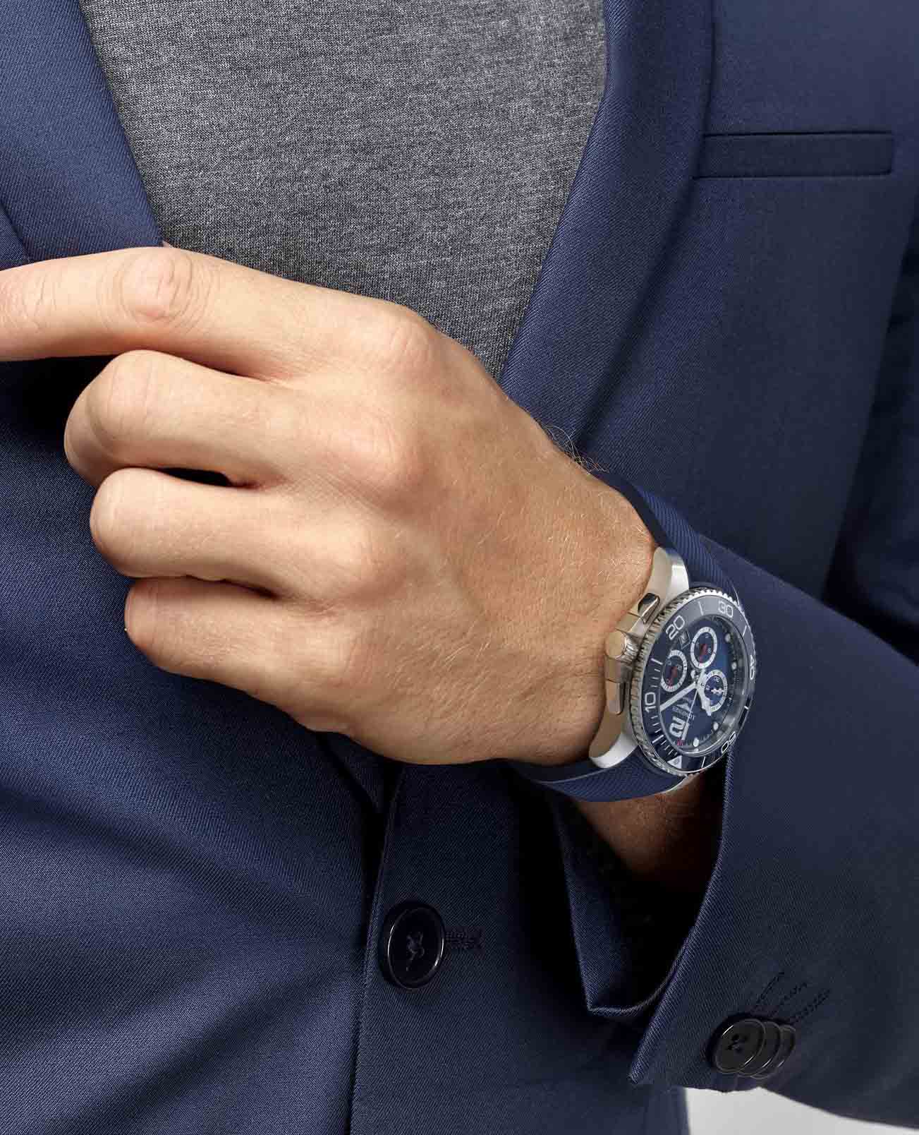 Циферблат с крупной индикаций времени дополнен контрастными стрелками и метками с люминесцентной подсветкойЛюминесцентное покрытиеПозволяет считывать показания времени в темноте. Производители наносят на стрелки, часовые индексы, безель или поверхность циферблата светонакопительный состав, дающий холодное свечение.. Устойчивое к царапинам сапфировое стекло имеет антибликовое покрытиеАнтибликовое покрытиеСлой оксида металла в 0,13-0,3 микрон, благодаря которому стекло часов не бликует и не отражает свет. Антибликовое покрытие уменьшает отражение света в 10 раз, обеспечивая отличную читаемость показателей циферблата.. Швейцарский автоматический механизм L688 обладает резерв хода на 54 часа.