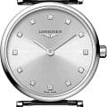 Женские швейцарские часы Longines La Grande Classique L4.209.4.74.6, кварцевый механизм с высокой точностью. Сапфировое стеклоСапфировое стеклоПрочный и надёжный материал из кристалла сапфира синтетического происхождения, характеризующийся особой твёрдостью и устойчивостью к царапинам и повреждениям. устойчивое к появлению царапин, обладающее высокой прозрачностью. Корпус часов изготовлен из стали. Циферблат дополнен 12 бриллиантами. Класс водозащиты: 30 метров, позволит защитить корпус от случайных брызг или капель дождя. Браслет из стали на раскладной застёжкеРаскладная застёжкаТакой тип застёжки используется только на браслетах из металла. Она никогда не раскрывается полностью, происходит разделение на 2 и более частей. Раскладывающая застёжка снизит вероятность потери часов к минимуму..