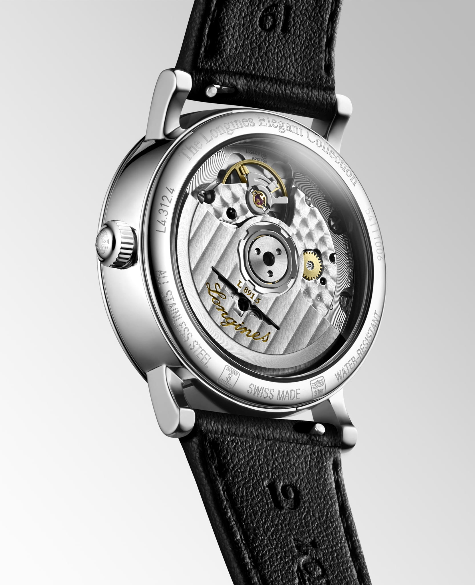 Швейцарские механические часы с автоподзаводом Longines Elegant Collection L4.312.4.11.0. Сапфировое стеклоСапфировое стеклоПрочный и надёжный материал из кристалла сапфира синтетического происхождения, характеризующийся особой твёрдостью и устойчивостью к царапинам и повреждениям. устойчивое к появлению царапин, обладающее высокой прозрачностью. Корпус изготовлен из стали. Окошко даты находится в положении 3 часа. Механизм приводит в действие калибр L891. Запас хода на 72 часа. Класс водозащиты: 30 метров, позволит защитить корпус от случайных брызг или капель дождя. Кожаный ремешок на стандартной застежке.