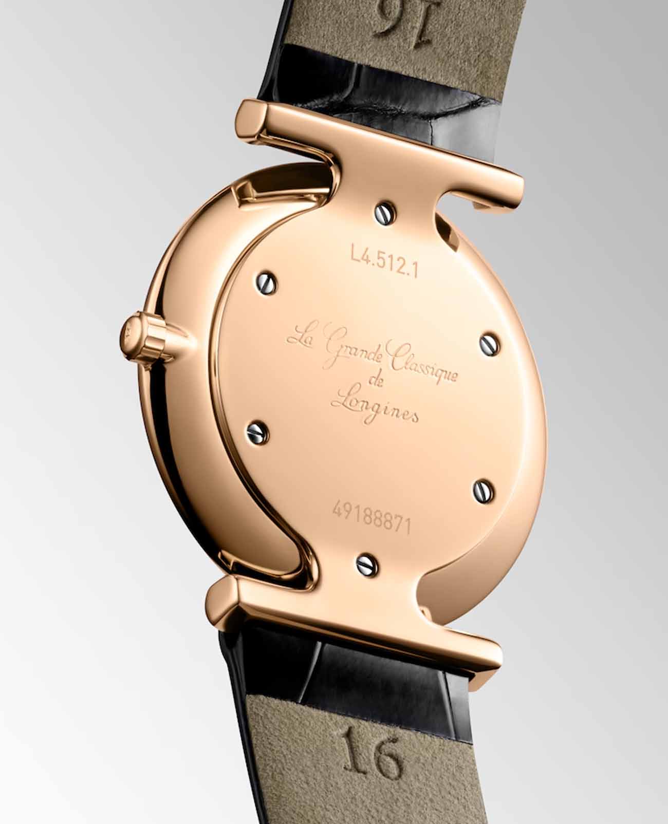 Женские швейцарские часы Longines La Grande Classique L4.512.1.91.2, кварцевый механизм с высокой точностью. Сапфировое стеклоСапфировое стеклоПрочный и надёжный материал из кристалла сапфира синтетического происхождения, характеризующийся особой твёрдостью и устойчивостью к царапинам и повреждениям. устойчивое к появлению царапин, обладающее высокой прозрачностью. Корпус часов изготовлен из стали с PVD-покрытиемPVDУльтратонкое покрытие наносится в технике вакуумного напыления, сочетает в себе нитрид титана особой прочности со слоем золота или оксида хрома. Несёт в себе декоративную или защитную функцию.. Римская индикация времени. Эта серия является символом классической элегантности и вневременной утонченности Longines и отличается очень тонким профилем. Класс водозащиты: 30 метров, позволит защитить корпус от случайных брызг или капель дождя. Ремешок из кожи аллигатора на стандартной застёжке.