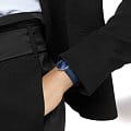 Компактный синий циферблат украшен 12 бриллиантами общим весом 0,081 карата. Элегантным дополнением стал ремешок из кожи аллигатора. Швейцарский кварцевый калибр L420 обеспечивает высокую точность хода. Сапфировое стекло не допускает появления царапин на поверхности.