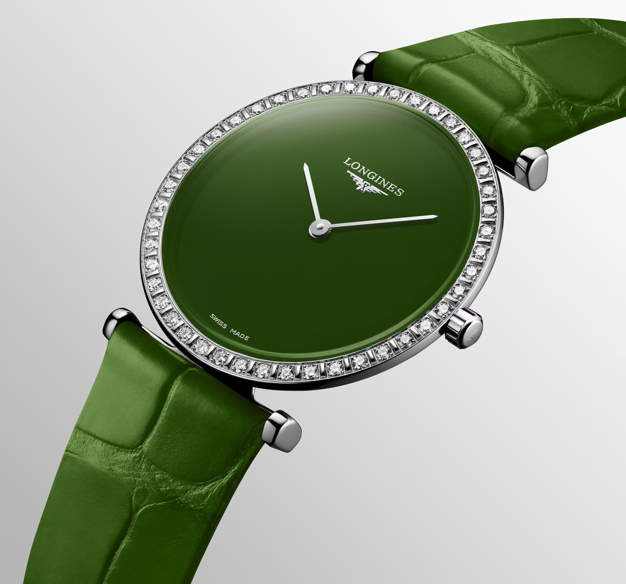 Женские швейцарские механические часы с автоподзаводом Longines La Grande Classique L4.523.0.60.2. Сапфировое стеклоСапфировое стеклоПрочный и надёжный материал из кристалла сапфира синтетического происхождения, характеризующийся особой твёрдостью и устойчивостью к царапинам и повреждениям. не допускает появления царапин на поверхности. Корпус изготовлен из нержавеющей стали. БезельБезельВнешний ободок, закрепляющий стекло. В спортивных часах так называется поворотное кольцо с делениями на циферблате, выполняет роль таймера – замеряет отрезки времени на шкале. Неподвижный безель – элемент декора. Однонаправленно вращающийся безель на дайверских часах позволяет фиксировать моменты погружения и выныривания на поверхность. часов декорирован 44 бриллиантами общим весом 0.369 карата. Швейцарский кварцевый калибр L420 обеспечивает высокую точность хода. Класс водозащиты: 30 метров, позволит защитить корпус от случайных брызг или капель дождя. Ремешок из кожи аллигатора на стандартной застёжке.