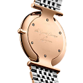 Белый перламутровый циферблат украшен 12 бриллиантами общим весом 0,081 карата.PVD-покрытиеPVDУльтратонкое покрытие наносится в технике вакуумного напыления, сочетает в себе нитрид титана особой прочности со слоем золота или оксида хрома. Несёт в себе декоративную или защитную функцию. устойчиво к царапинам и износу. Швейцарский кварцевый механизм L420 отличается абсолютной точностью хода. Стекло из сапфира устойчиво к царапинам. Водозащита – до 3 бар.