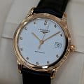 Мужские швейцарские механические часы Longines Flagship L4.774.8.27.2, механический механизм (автоматический калибр) с высокой точностью. Сапфировое стеклоСапфировое стеклоПрочный и надёжный материал из кристалла сапфира синтетического происхождения, характеризующийся особой твёрдостью и устойчивостью к царапинам и повреждениям. устойчивое к появлению царапин, обладающее высокой прозрачностью. Класс водозащиты: 30 метров, позволит защитить корпус от случайных брызг или капель дождя. Корпус часов изготовлен из 18-каратного розового золота18-каратное золотоОбозначение по каратной системе пробирования, оно показывает, сколько драгоценного металла содержится в изделии. 18 карат - в составе 75% чистого золота, соответствует 750 пробе.