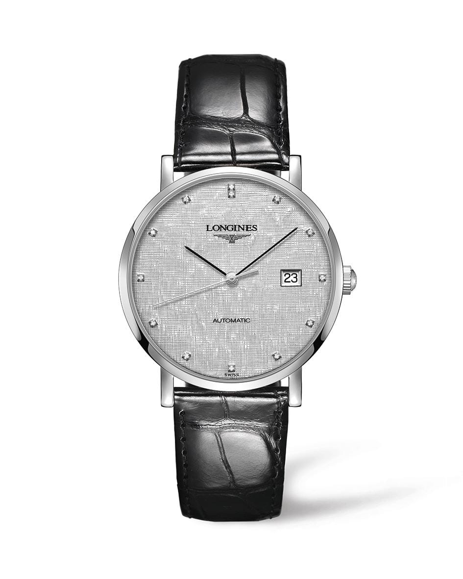 Женские швейцарские механические часы с автоподзаводом Longines Elegant Collection L4.910.4.77.2. Сапфировое стеклоСапфировое стеклоПрочный и надёжный материал из кристалла сапфира синтетического происхождения, характеризующийся особой твёрдостью и устойчивостью к царапинам и повреждениям. устойчивое к появлению царапин, обладающее высокой прозрачностью. Корпус изготовлен из нержавещей стали. Циферблат украшен 13 бриллиантами группы Top Wesselton VS-SI общим весом 0.032 карата. Окошко даты находится в положении 3 часа. Класс водозащиты: 30 метров, позволит защитить корпус от случайных брызг или капель дождя. Ремешок из кожи аллигатора на стандартной застежке.