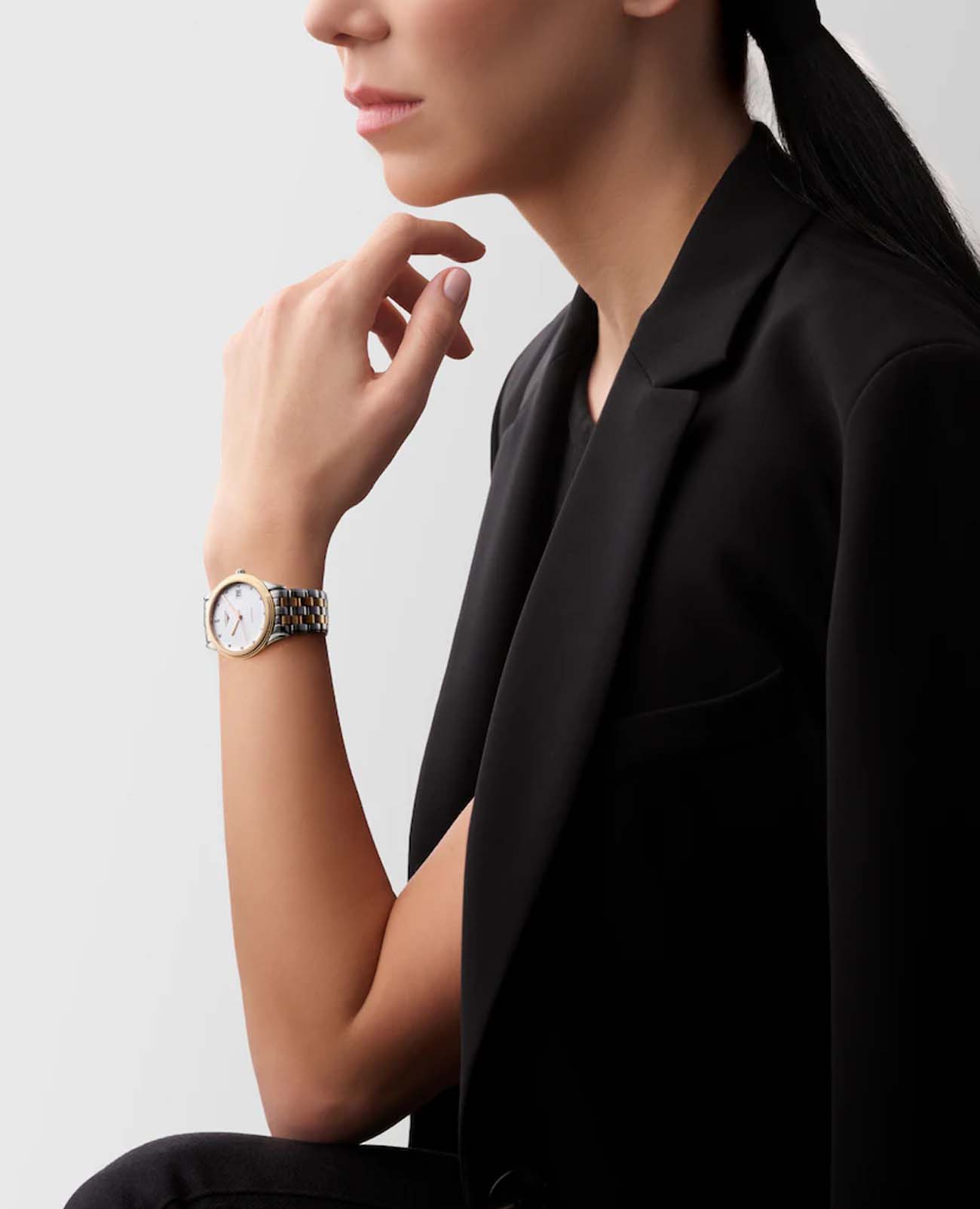 Циферблат часов защищен сапфировым стекломСапфировое стеклоПрочный и надёжный материал из кристалла сапфира синтетического происхождения, характеризующийся особой твёрдостью и устойчивостью к царапинам и повреждениям., дополненным многослойным антибликовым покрытиемАнтибликовое покрытиеСлой оксида металла в 0,13-0,3 микрон, благодаря которому стекло часов не бликует и не отражает свет. Антибликовое покрытие уменьшает отражение света в 10 раз, обеспечивая отличную читаемость показателей циферблата.. Это позволяет вам наслаждаться красотой и точностью часового механизма в любое время суток, будь то солнечный день или тихая звездная ночь. Изящные 13 бриллиантов общим весом 0,059 карата, инкрустированные в корпус часов, придают им особую роскошь и блеск, подчеркивая ваш безупречный вкус и статус.