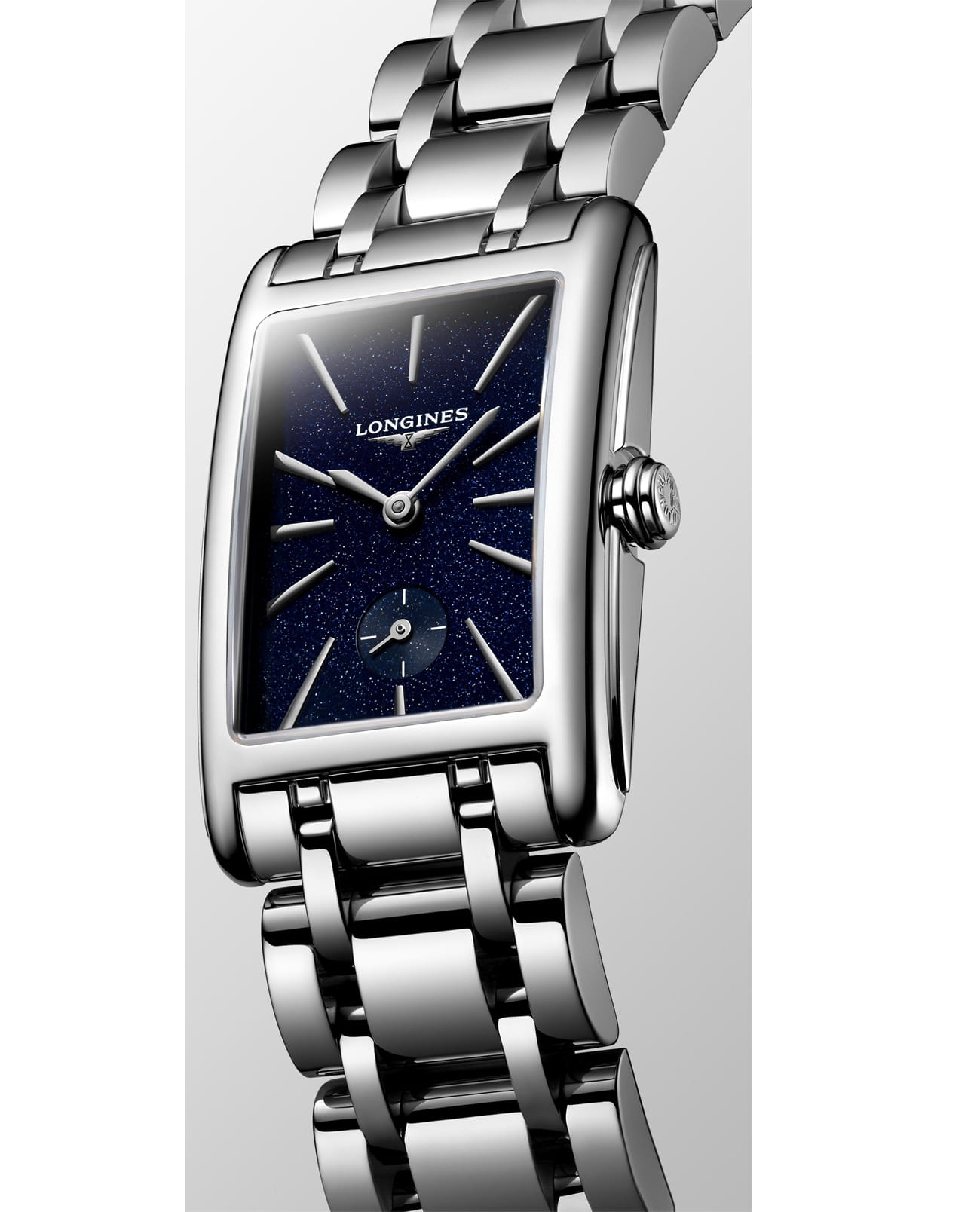 Женские швейцарские часы Longines DolceVita L5.255.4.93.6 — это воплощение изысканности и утонченного вкуса. Их изящный синий циферблат украшен посеребренными полированными стрелками, придающими им особую элегантность. Сапфировое стеклоСапфировое стеклоПрочный и надёжный материал из кристалла сапфира синтетического происхождения, характеризующийся особой твёрдостью и устойчивостью к царапинам и повреждениям. устойчивое к появлению царапин, обладающее высокой прозрачностью. Браслет на застёжке «бабочка» с кнопкамиЗастёжка "бабочка"Такой вид застёжки дополняется предохранителями, помогающими избежать случайного раскрытия браслета. Обладают изящным исполнением. , выполненный из высококачественной нержавеющей стали, подчеркивает утонченность и надежность этой модели.