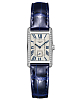 Женские швейцарские часы Longines DolceVita L5.512.0.71.7, кварцевый механизм с высокой точностью. Сапфировое стеклоСапфировое стеклоПрочный и надёжный материал из кристалла сапфира синтетического происхождения, характеризующийся особой твёрдостью и устойчивостью к царапинам и повреждениям. устойчивое к появлению царапин, обладающее высокой прозрачностью. Корпус часов изготовлен из нержавеющей стали с 46 бриллиантами группы Top Wesselton IF-VVS общим весом 0.552 карата. Метки в виде римских цифр. Малая секундная стрелка в положении 6 часов. Класс водозащиты: 30 метров, позволит защитить корпус от случайных брызг или капель дождя. Ремешок из кожи аллигатора на стандартной застежке.