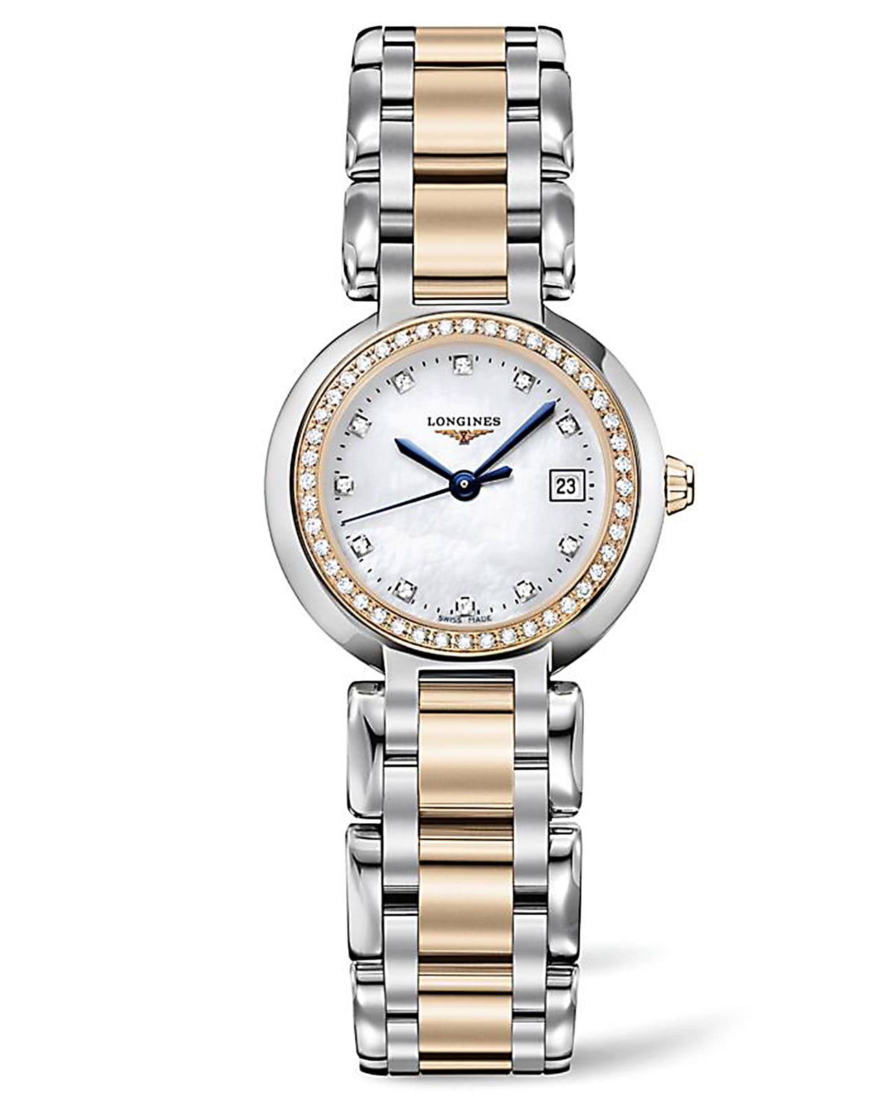 Женские швейцарские часы с бриллиантами Longines PrimaLuna L8.110.5.89.6, кварцевый механизм с высокой точностью. Сапфировое стекло устойчивое к появлению царапин, обладающее высокой прозрачностью. Класс водозащиты: 30 метров, позволит защитить корпус от случайных брызг или капель дождя. Корпус часов изготовлен из стали, разноцветного цвета.