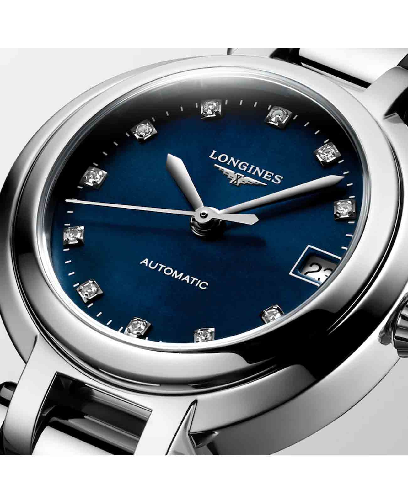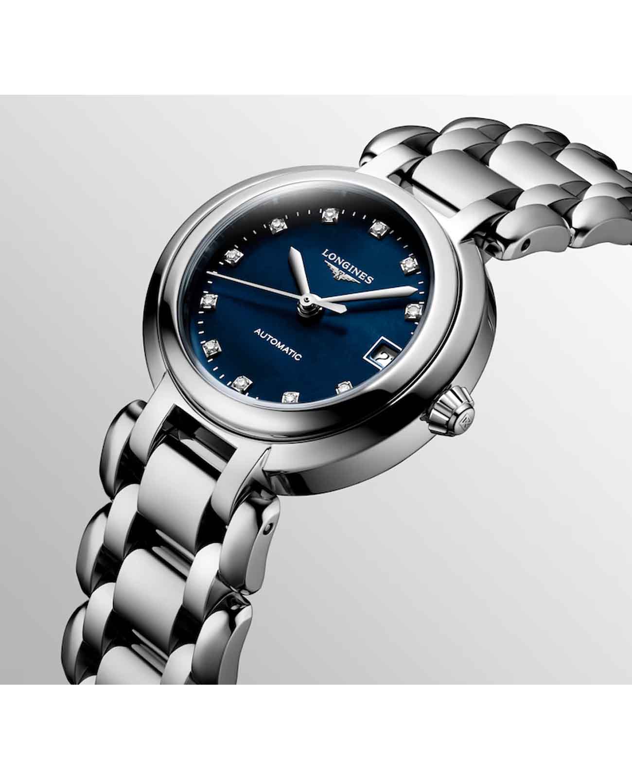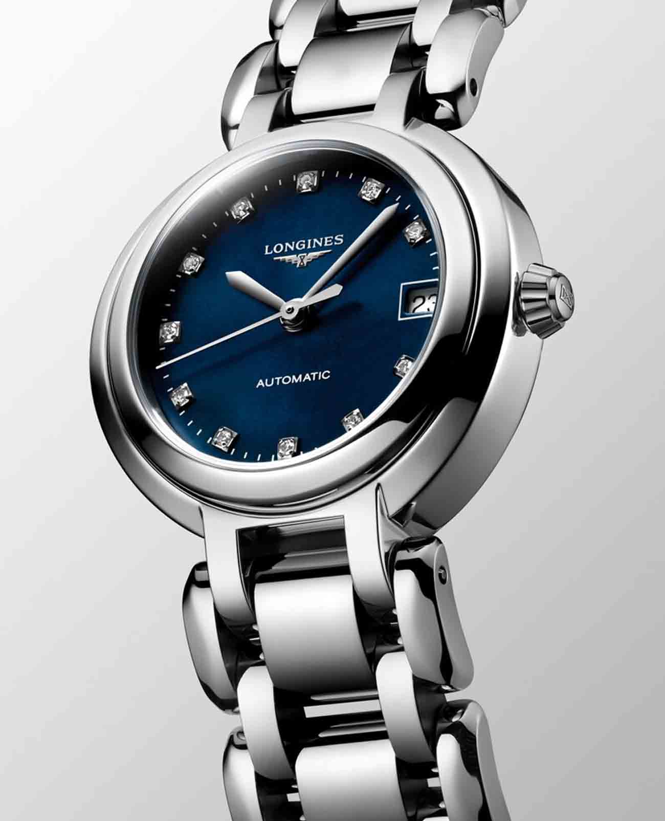 Женские швейцарские механические часы с автоподзаводом Longines PrimaLuna L8.111.4.98.6. Исключительно женственная коллекция. Округлые, нежные линии Longines Prima Luna - дань преклонения перед женственной Луной, символом переменчивости времени. Сапфировое стеклоСапфировое стеклоПрочный и надёжный материал из кристалла сапфира синтетического происхождения, характеризующийся особой твёрдостью и устойчивостью к царапинам и повреждениям. устойчивое к появлению царапин, обладающее высокой прозрачностью. Корпус часов изготовлен из нержавеющей стали. Изысканная чистота циферблата подчеркивает ее мягкий силуэт, обрамленный сиянием бриллиантов. Циферблат с 11 бриллиантами группы Top Wesselton VS-SI общим весом 0.032 карата. Окошко даты в положении 3 часов. Автоматический механизм с частотой баланса 28 800 полуколебаний в час и запасом хода, которого хватает примерно на 45 часов работы. Класс водозащиты: 30 метров, позволит защитить корпус от случайных брызг или капель дождя. Стальной браслет на застёжке-бабочке с кнопкамиЗастёжка "бабочка"Такой вид застёжки дополняется предохранителями, помогающими избежать случайного раскрытия браслета. Обладают изящным исполнением. .