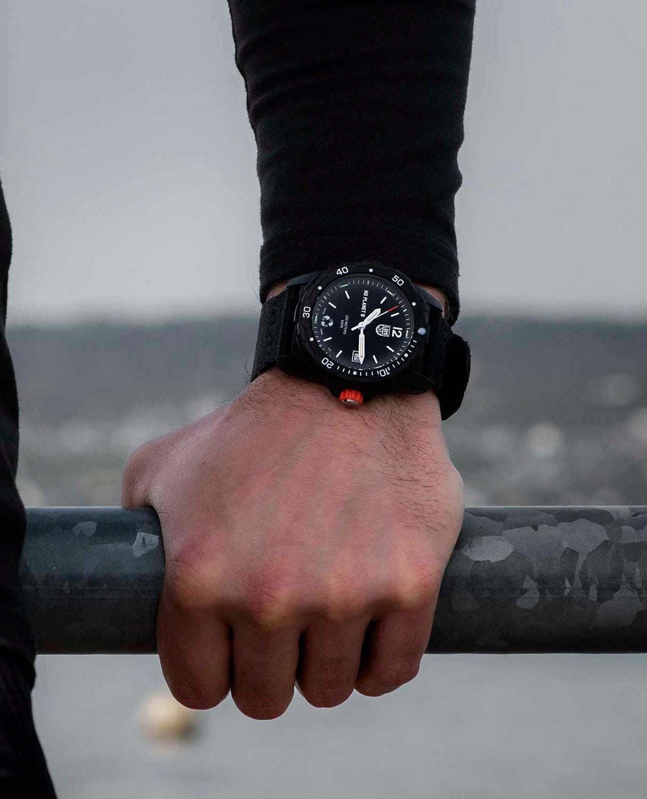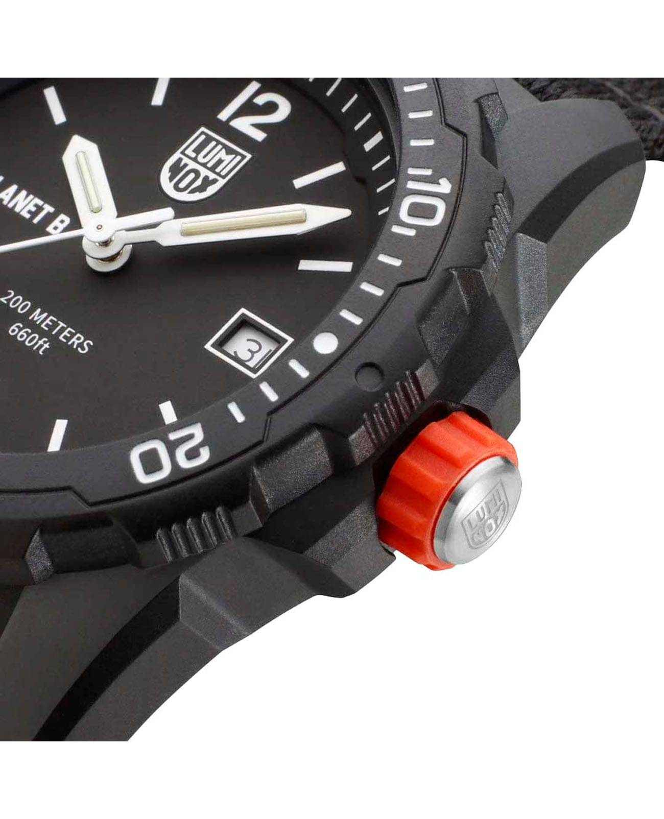 Мужские наручные часы Luminox Bear Grylls Survival ECO NO PLANET B XB.3722.ECO сочетают в себе экологичность и функциональность для любителей активного образа жизни. Модель обладает круглым корпусом диаметром 43 мм, изготовленным из переработанного океанского пластика, что обеспечивает высокую устойчивость к внешним воздействиям при минимальном воздействии на окружающую среду. Браслет выполнен из нейлона черного цвета на стандартной застежке, гарантирующей комфортное ношение и безопасность. Циферблат черного цвета оснащен индикацией времени и даты, а также люминесцентными элементами для видимости в темноте. Для защиты используется минеральное стеклоМинеральное стеклоМинеральное стекло представляет собой искусственно выращенный минерал кварца. Такое стекло отличается особой устойчивостью к повреждениям и царапинам. Уступает по некоторым качествам сапфировому стеклу., обеспечивающее прочную защиту от царапин. Часы комплектуются вращающимся безелемБезельВнешний ободок, закрепляющий стекло. В спортивных часах так называется поворотное кольцо с делениями на циферблате, выполняет роль таймера – замеряет отрезки времени на шкале. Неподвижный безель – элемент декора. Однонаправленно вращающийся безель на дайверских часах позволяет фиксировать моменты погружения и выныривания на поверхность. с односторонним вращением, полезным для подсчета времени погружения или других временных интервалов.Часы работают на кварцевом механизме Ronda 515, который обеспечивает точное время без необходимости подзаводки, при этом срок службы батарейки составляет около 3-4 лет. Водонепроницаемость часов достигает 200 метров (20 атмосфер), что позволяет использовать их при плавании, дайвинге и других водных видах спорта. Luminox XB.3722.ECO — это не просто аксессуар, а инструмент для выживания, созданный в сотрудничестве с Bear Grylls, который подчеркивает важность защиты нашей планеты через использование материалов из переработанного пластика.
