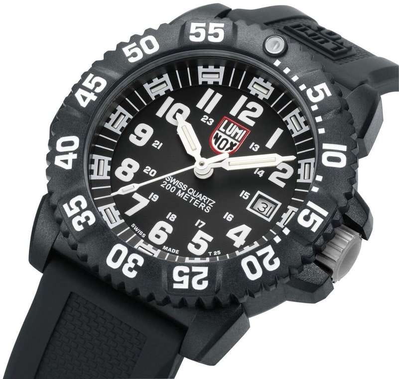 Часы Luminox XS.3051.F — это воплощение стиля и надежности для мужчин, которые не боятся преодолевать преграды. Швейцарские часы оснащены кварцевым механизмом с калибром Ronda 515 HH6, гарантируя точность и долговечность работы. Корпус выполнен из пластика, усиленного прессованным карбоном, что обеспечивает прочность и легкость конструкции. Черный циферблат защищен минеральным стекломМинеральное стеклоМинеральное стекло представляет собой искусственно выращенный минерал кварца. Такое стекло отличается особой устойчивостью к повреждениям и царапинам. Уступает по некоторым качествам сапфировому стеклу. повышенной прочности, способным выдерживать значительные нагрузки. Водозащита до 200 метров позволяет использовать часы в водных видах спорта и экстремальных условиях. Вращающийся безельБезельВнешний ободок, закрепляющий стекло. В спортивных часах так называется поворотное кольцо с делениями на циферблате, выполняет роль таймера – замеряет отрезки времени на шкале. Неподвижный безель – элемент декора. Однонаправленно вращающийся безель на дайверских часах позволяет фиксировать моменты погружения и выныривания на поверхность. и поддержка 12- и 24-часового формата времени делают часы функциональными и удобными в использовании. Эксклюзивная LLTLLTLLT — это автономный механизм подсветки, основанный на использовании микроскопических газонаполненных элементов. Специальные герметичные капсулы из боросиликатного стекла, интегрированные в циферблат, генерируют свечение без необходимости подключения к внешним источникам энергии. Для их работы не требуется ни дополнительный свет, ни механическое воздействие (например, нажатие кнопки). Свечение возникает благодаря химическому процессу: реакция между тритием, заключенным в капсулах, и люминофорным покрытием создает стабильное автономное освещение. Технология обеспечивает энергетическую независимость и долговечность подсветки.-подсветка с тритием обеспечивает видимость в полной темноте на протяжении 25 лет: часовая и секундная стрелки, а также часовые метки светятся зеленым цветом, минутная стрелка и нулевая метка на безелеБезельВнешний ободок, закрепляющий стекло. В спортивных часах так называется поворотное кольцо с делениями на циферблате, выполняет роль таймера – замеряет отрезки времени на шкале. Неподвижный безель – элемент декора. Однонаправленно вращающийся безель на дайверских часах позволяет фиксировать моменты погружения и выныривания на поверхность. — оранжевым. Метки в виде арабских цифр и окошко даты в положении 3 часа добавляют практичности и стильности. Задняя крышка закреплена стальными винтами, а рифленая заводная головка с защитой выполнена из стали. Часы снабжены удобным полиуретановым ремешком с классической застежкой, обеспечивающим комфортное ношение.