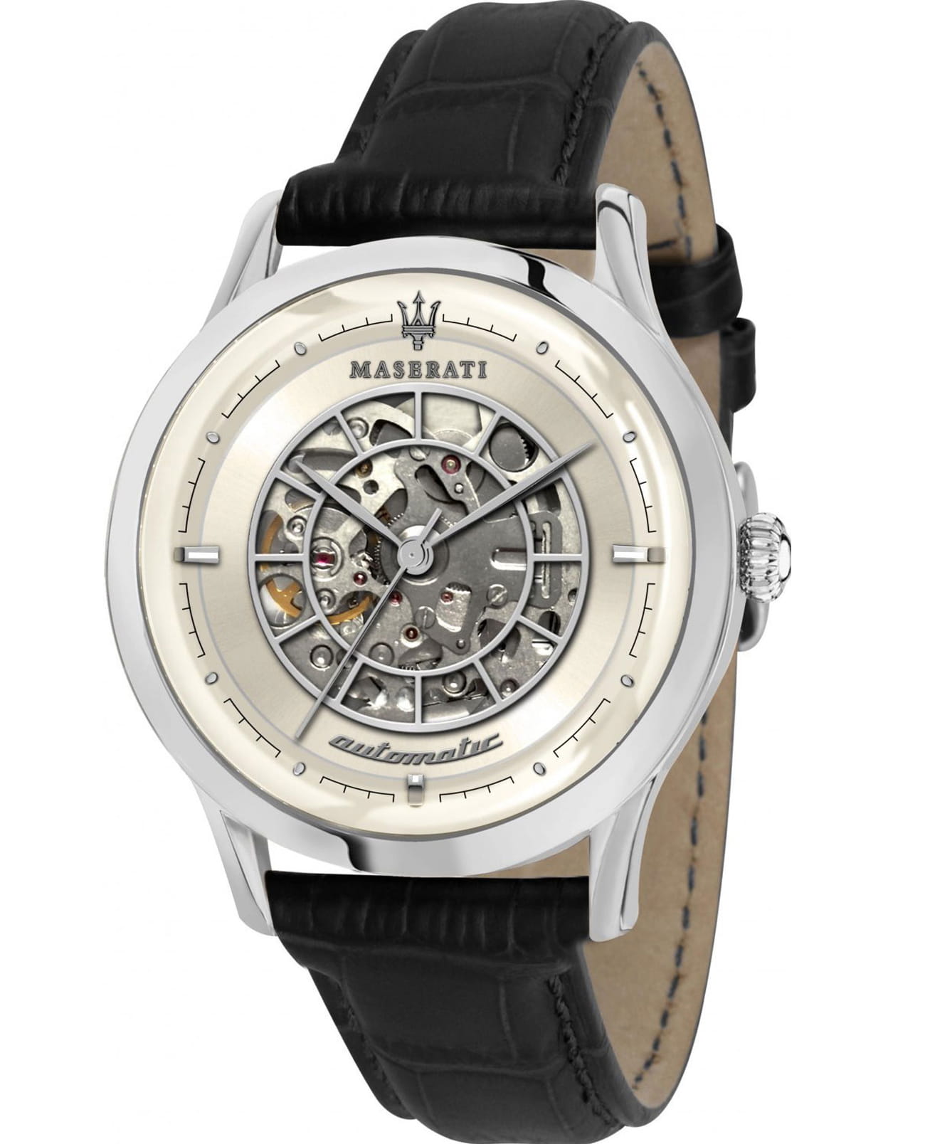 Мужские механические часы скелетоны Maserati R8821133006, механический механизм (автоматический калибр) с высокой точностью. Класс водозащиты: 100 метров, позволит плавать, нырять и заниматься другими водными видами спорта. Корпус часов изготовлен из стали, цвета.