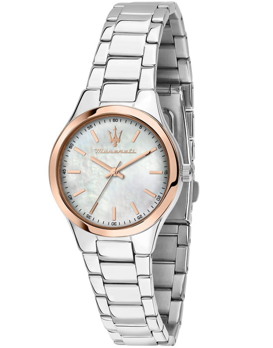 Женские американские часы Maserati R8853151503, кварцевый механизм с высокой точностью. Минеральное стеклоМинеральное стеклоМинеральное стекло представляет собой искусственно выращенный минерал кварца. Такое стекло отличается особой устойчивостью к повреждениям и царапинам. Уступает по некоторым качествам сапфировому стеклу. устойчивое к мелким механическим повреждениям. Класс водозащиты: 50 метров, позволит защитить корпус от случайных брызг или капель дождя. Корпус часов изготовлен из стали.