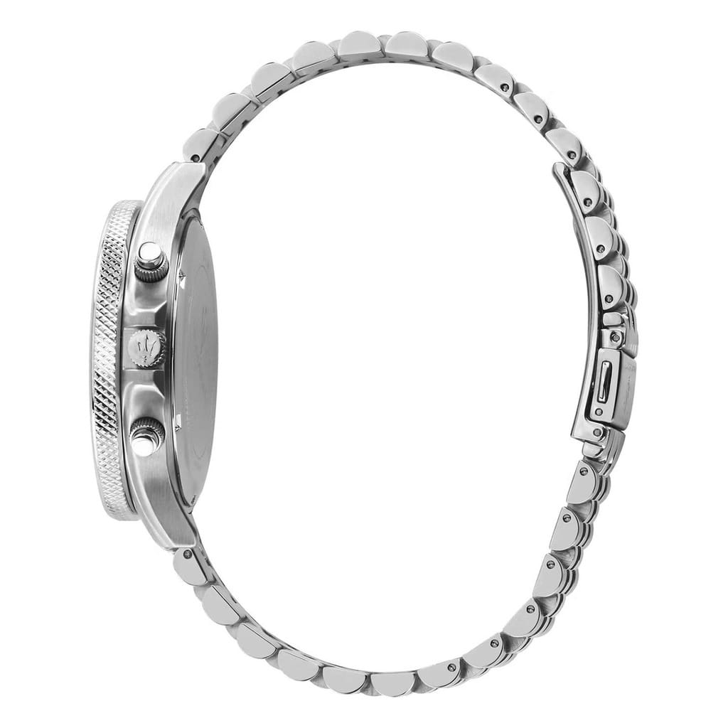 Часы Maserati Sfida Chronograph R8873640025 представляют собой воплощение итальянской элегантности и технологической точности. Часы с хронографомХронографФункция позволяет измерять отрезки времени с особой точностью: часы, минуты, секунды. Верным признаком хронографа является наличие на циферблате 3 дополнительных окошек-счётчиков. оборудованы надёжным кварцевым механизмом калибром Miyota JS25, обеспечивающим точность и долговечность. Корпус диаметром 44 мм выполнен из стали, что придаёт им современный и стильный вид. Циферблат, выполненный по технологии Sunray, эффектно играет на свету, создавая впечатление солнечных лучей. Он украшен фирменным логотипом «Maserati» и метками в виде штрихов, а также содержит окошко даты, расположенное между отметками 4 и 5 часов. БезельБезельВнешний ободок, закрепляющий стекло. В спортивных часах так называется поворотное кольцо с делениями на циферблате, выполняет роль таймера – замеряет отрезки времени на шкале. Неподвижный безель – элемент декора. Однонаправленно вращающийся безель на дайверских часах позволяет фиксировать моменты погружения и выныривания на поверхность. с IP-покрытиемIP-покрытиеМетод ионного напыления. Демонстрирует повышенную устойчивость к истиранию, окислению и химическим веществам. Под воздействием высокого давления и температуры около 1500°C молекулы металла надёжно соединяются с частицами корпуса часов. имеет шкалу тахиметраТахиметрРазмеченная шкала, располагается на ободке или безеле часов. Тахиметр позволяет рассчитать скорость на определённом участке пути, расстояние измеряется в километрах или милях.. Люминесцентное покрытиеЛюминесцентное покрытиеПозволяет считывать показания времени в темноте. Производители наносят на стрелки, часовые индексы, безель или поверхность циферблата светонакопительный состав, дающий холодное свечение. на стрелках обеспечивает отличную видимость в темноте. Минеральное стеклоМинеральное стеклоМинеральное стекло представляет собой искусственно выращенный минерал кварца. Такое стекло отличается особой устойчивостью к повреждениям и царапинам. Уступает по некоторым качествам сапфировому стеклу. защищает циферблат, а завинчивающаяся задняя крышка и заводная головка с защитой гарантируют водозащиту до 100WR, позволяя без опасений использовать часы в различных условиях. Стальной браслет с раскладной застёжкойРаскладная застёжкаТакой тип застёжки используется только на браслетах из металла. Она никогда не раскрывается полностью, происходит разделение на 2 и более частей. Раскладывающая застёжка снизит вероятность потери часов к минимуму. обеспечивает комфортное ношение и надёжную фиксацию на запястье. Эти часы идеально подойдут для тех, кто ценит стиль и функциональность в одном аксессуаре.