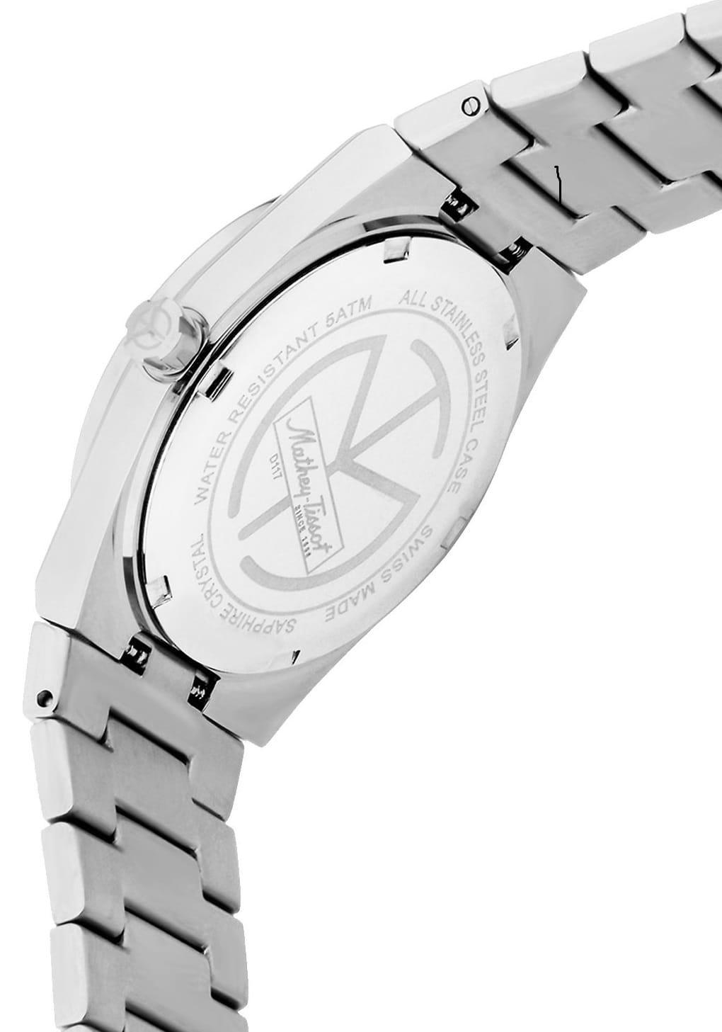 Женские кварцевые часы Mathey-Tissot Zoltan D117ABU — это стильное сочетание элегантности и современного дизайна. Изящный корпус выполнен из нержавеющей стали серебристого цвета, диаметром 34 мм, что придаст образу женственности и романтизма. Изысканный циферблат с метками в виде штрихов придает модели особый блеск. Циферблат защищен сапфировым стекломСапфировое стеклоПрочный и надёжный материал из кристалла сапфира синтетического происхождения, характеризующийся особой твёрдостью и устойчивостью к царапинам и повреждениям., обеспечивающий устойчивость к царапинам. Стрелки и метки с люминесцентным покрытиемЛюминесцентное покрытиеПозволяет считывать показания времени в темноте. Производители наносят на стрелки, часовые индексы, безель или поверхность циферблата светонакопительный состав, дающий холодное свечение.. Окошко даты находится в положении 3 часа. Часы оснащены надежным кварцевым механизмом. Стальной браслет на застёжке-бабочке с кнопкамиЗастёжка "бабочка"Такой вид застёжки дополняется предохранителями, помогающими избежать случайного раскрытия браслета. Обладают изящным исполнением. , гарантирует комфортное и безопасное ношение. Класс водозащиты: 50 метров позволит защитить корпус от случайных брызг или капель дождя. Mathey-Tissot — отличный выбор для тех, кто ценит утонченность и качество.