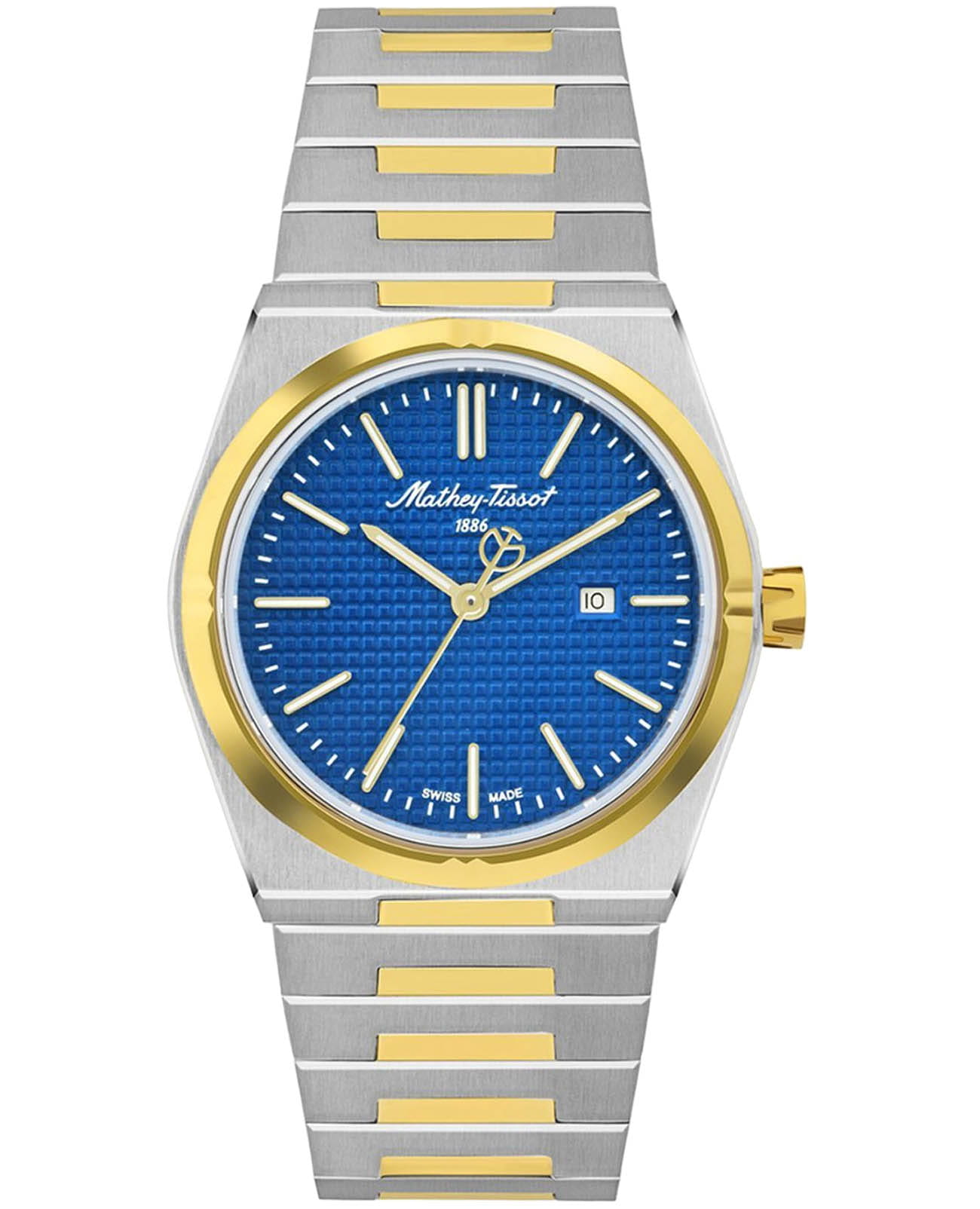 Женские кварцевые часы Mathey-Tissot Zoltan D117BBU — это стильное сочетание элегантности и современного дизайна. Изящный корпус выполнен из нержавеющей стали, диаметром 34 мм, что придаст образу женственности и романтизма. Изысканный циферблат с метками в виде штрихов придает модели особый блеск. Циферблат защищен сапфировым стекломСапфировое стеклоПрочный и надёжный материал из кристалла сапфира синтетического происхождения, характеризующийся особой твёрдостью и устойчивостью к царапинам и повреждениям., обеспечивающий устойчивость к царапинам. Стрелки и метки с люминесцентным покрытиемЛюминесцентное покрытиеПозволяет считывать показания времени в темноте. Производители наносят на стрелки, часовые индексы, безель или поверхность циферблата светонакопительный состав, дающий холодное свечение.. Неподвижный безельБезельВнешний ободок, закрепляющий стекло. В спортивных часах так называется поворотное кольцо с делениями на циферблате, выполняет роль таймера – замеряет отрезки времени на шкале. Неподвижный безель – элемент декора. Однонаправленно вращающийся безель на дайверских часах позволяет фиксировать моменты погружения и выныривания на поверхность. с PVD-покрытиемPVDУльтратонкое покрытие наносится в технике вакуумного напыления, сочетает в себе нитрид титана особой прочности со слоем золота или оксида хрома. Несёт в себе декоративную или защитную функцию. золотистого цвета. Окошко даты находится в положении 3 часа. Часы оснащены надежным кварцевым механизмом. Стальной браслет с частичным PVD-покрытиемPVDУльтратонкое покрытие наносится в технике вакуумного напыления, сочетает в себе нитрид титана особой прочности со слоем золота или оксида хрома. Несёт в себе декоративную или защитную функцию. на застёжке-бабочке с кнопкамиЗастёжка "бабочка"Такой вид застёжки дополняется предохранителями, помогающими избежать случайного раскрытия браслета. Обладают изящным исполнением. , гарантирует комфортное и безопасное ношение. Класс водозащиты: 50 метров позволит защитить корпус от случайных брызг или капель дождя. Mathey-Tissot — отличный выбор для тех, кто ценит утонченность и качество.