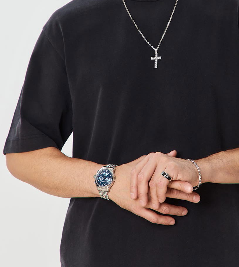Мужские кварцевые часы-хронографХронографФункция позволяет измерять отрезки времени с особой точностью: часы, минуты, секунды. Верным признаком хронографа является наличие на циферблате 3 дополнительных окошек-счётчиков. с секундомеромСекундомерСекундоме́р — прибор, способный измерять интервалы времени с точностью до долей секунды. Mathey-Tissot Type 22 H1822CHABU — это стильное сочетание элегантности и современного дизайна. Изящный корпус выполнен из нержавеющей стали, диаметром 42 мм, что придаст образу элегантности и надежности. Изысканный циферблат с метками в виде штрихов придает модели особый блеск. Циферблат защищен минеральным стекломМинеральное стеклоМинеральное стекло представляет собой искусственно выращенный минерал кварца. Такое стекло отличается особой устойчивостью к повреждениям и царапинам. Уступает по некоторым качествам сапфировому стеклу. с сапфировым покрытием, обеспечивает устойчивость к царапинам. Стрелки с люминесцентным покрытиемЛюминесцентное покрытиеПозволяет считывать показания времени в темноте. Производители наносят на стрелки, часовые индексы, безель или поверхность циферблата светонакопительный состав, дающий холодное свечение.. Окошко даты находится в положении между 4 и 5 часов. Часы оснащены надежным кварцевым механизмом. Стальной браслет на раскладной застёжке с фиксаторомРаскладная застёжкаТакой тип застёжки используется только на браслетах из металла. Она никогда не раскрывается полностью, происходит разделение на 2 и более частей. Раскладывающая застёжка снизит вероятность потери часов к минимуму., гарантирует комфортное и безопасное ношение. Рифленая заводная головка. Класс водозащиты: 50 метров позволит защитить корпус от случайных брызг или капель дождя. Mathey-Tissot  — отличный выбор для тех, кто ценит утонченность и качество.