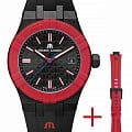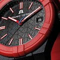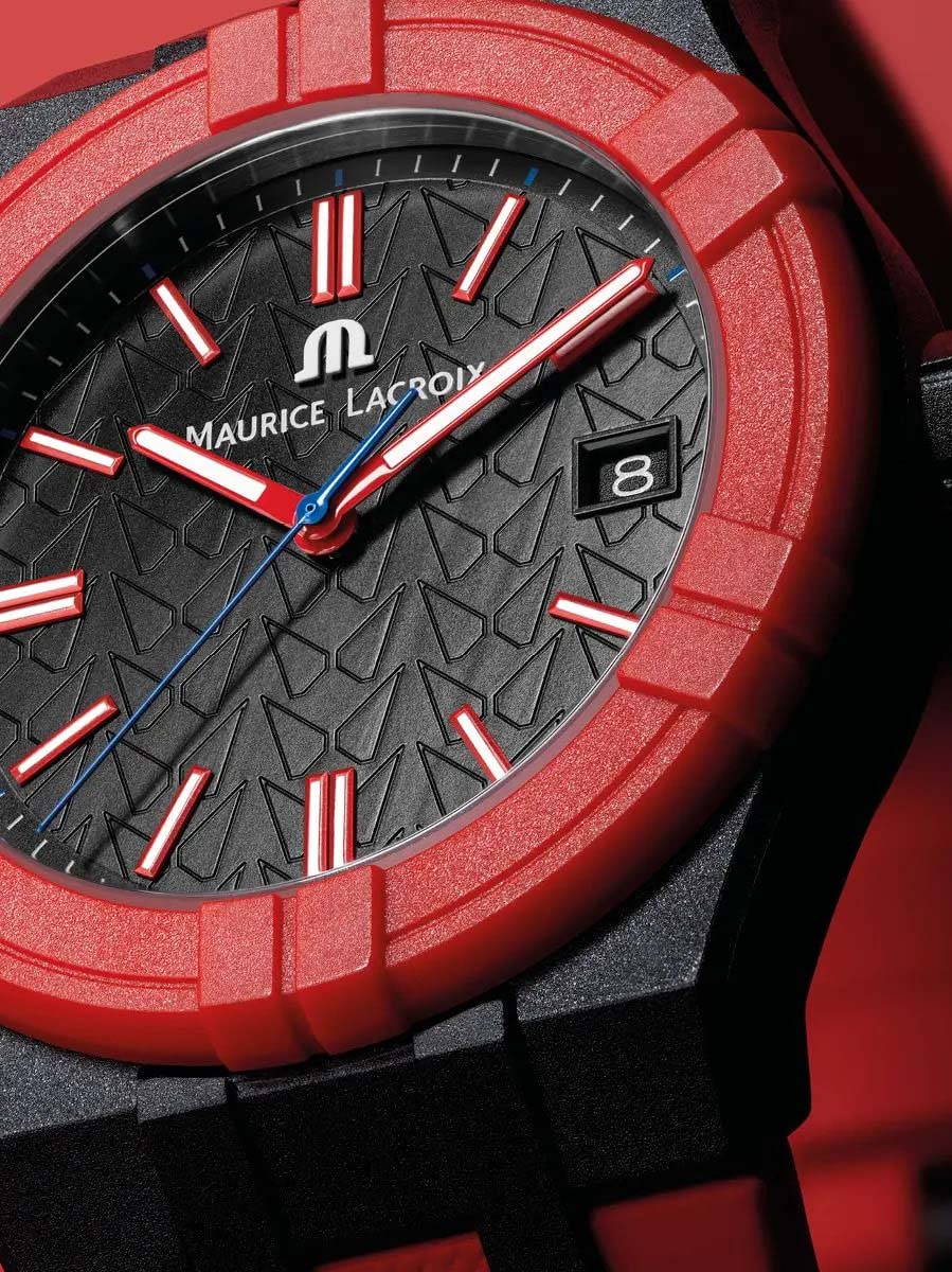 Увековечивая историю #tide, эта новая модель снова изготовлена из переработанного пластика, связанного океаном. Он оснащен черным циферблатом и соответствующим 40-миллиметровым корпусом. БезельБезельВнешний ободок, закрепляющий стекло. В спортивных часах так называется поворотное кольцо с делениями на циферблате, выполняет роль таймера – замеряет отрезки времени на шкале. Неподвижный безель – элемент декора. Однонаправленно вращающийся безель на дайверских часах позволяет фиксировать моменты погружения и выныривания на поверхность. выполнен в красном цвете, а на черном каучуковом ремешке красуется логотип Maurice Lacroix в виде буквы "М", также выполненный в ярком красном оттенке. Кроме того, часы поставляются со вторым ремешком, на этот раз из красной резины с черными вставками. Оснащенный системой легкой замены ремешков Maison, он позволяет легко менять один ремешок на другой без использования инструментов.