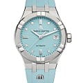 Часы Maurice Lacroix Aikon Automatic Limited Summer Edition 35 mm (AI6006-SS00F-451-C) из лимитированной коллекции отличаются элегантностью и современным стилем. Корпус диаметром 35 мм выполнен из нержавеющей стали с чередованием полированных и сатинированных поверхностей, а циферблат бирюзового цвета с узором "clous de Paris" украшен восьмью бриллиантами.