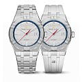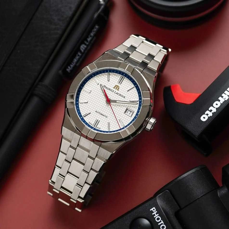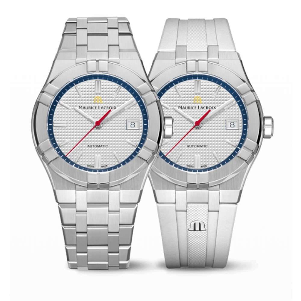 Швейцарские часы Maurice Lacroix Aikon Automatic AI6007-SS00F-130-A, воплощающие современный стиль и безупречное швейцарское качество. Корпус из нержавеющей стали диаметром 39 мм и высотой 11 мм совмещает матовую и полированную отделку, придавая часам изысканный вид. Сапфировое стеклоСапфировое стеклоПрочный и надёжный материал из кристалла сапфира синтетического происхождения, характеризующийся особой твёрдостью и устойчивостью к царапинам и повреждениям. с двойным антибликовым покрытиемАнтибликовое покрытиеСлой оксида металла в 0,13-0,3 микрон, благодаря которому стекло часов не бликует и не отражает свет. Антибликовое покрытие уменьшает отражение света в 10 раз, обеспечивая отличную читаемость показателей циферблата. надежно защищает гильошированный серебристый циферблат с узором Clous de Paris. Часы снабжены задней крышкой с сапфировым стеклом, позволяющим увидеть изысканно декорированный автоматический механизм ML115, обладающий запасом хода в 38 часов. БезельБезельВнешний ободок, закрепляющий стекло. В спортивных часах так называется поворотное кольцо с делениями на циферблате, выполняет роль таймера – замеряет отрезки времени на шкале. Неподвижный безель – элемент декора. Однонаправленно вращающийся безель на дайверских часах позволяет фиксировать моменты погружения и выныривания на поверхность. с узнаваемым дизайном из шести "когтей" и завинчивающаяся заводная головка подчеркивают уверенный характер модели. Часы водонепроницаемы до 20 ATM, что делает их отличным выбором для активного образа жизни. Стрелки с люминесцентным покрытиемЛюминесцентное покрытиеПозволяет считывать показания времени в темноте. Производители наносят на стрелки, часовые индексы, безель или поверхность циферблата светонакопительный состав, дающий холодное свечение., что облегчает чтение времени даже в условиях слабого освещения. На 3 часах расположено окошко с датой, добавляющее функциональности. Часы комплектуются браслетом из нержавеющей стали, и застежка «бабочка»Застёжка "бабочка"Такой вид застёжки дополняется предохранителями, помогающими избежать случайного раскрытия браслета. Обладают изящным исполнением. , раскладывающаяся при нажатии кнопок двойной блокировки и гравировкой Maurice Lacroix завершают образ, обеспечивая удобство и стиль. Особенность этой модели - дополнительный резиновый ремешок белого цвета со стандартной застежкой.
