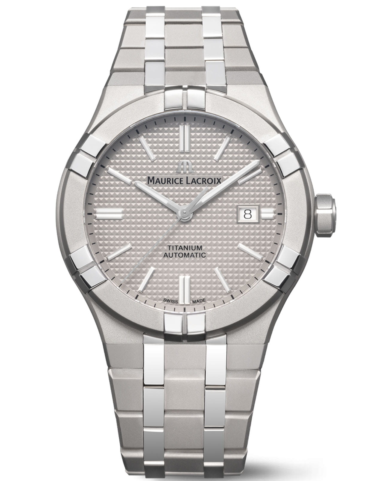 Женские кварцевые часы Maurice Lacroix Aikon Automatic Titanium AI6008-TT032-230-1. Корпус часов изготовлен из титана. Сапфировое стеклоСапфировое стеклоПрочный и надёжный материал из кристалла сапфира синтетического происхождения, характеризующийся особой твёрдостью и устойчивостью к царапинам и повреждениям. устойчивое к появлению царапин, обладающее высокой прозрачностью. Класс водозащиты: 200 метров, позволит плавать, нырять и заниматься другими водными видами спорта. Стрелки с люминесцентным покрытиемЛюминесцентное покрытиеПозволяет считывать показания времени в темноте. Производители наносят на стрелки, часовые индексы, безель или поверхность циферблата светонакопительный состав, дающий холодное свечение.. Титановый браслет и застёжка «бабочка» с кнопкамиЗастёжка "бабочка"Такой вид застёжки дополняется предохранителями, помогающими избежать случайного раскрытия браслета. Обладают изящным исполнением. . Окошко даты в положении 3 часа.