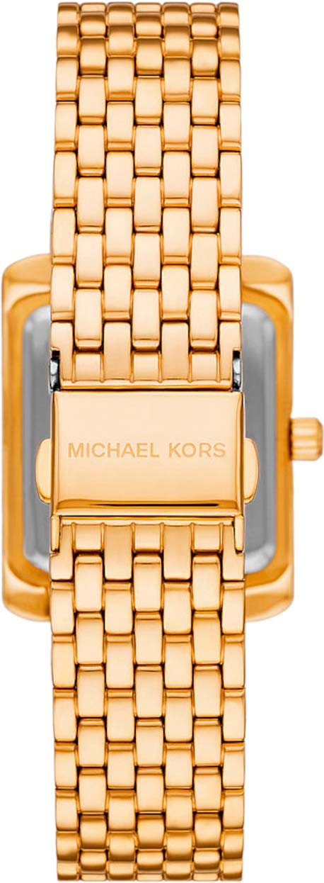 Женские американские наручные часы с минеральным стекломМинеральное стеклоМинеральное стекло представляет собой искусственно выращенный минерал кварца. Такое стекло отличается особой устойчивостью к повреждениям и царапинам. Уступает по некоторым качествам сапфировому стеклу. Michael Kors Emery MK4742, кварцевый механизм с высокой точностью. Минеральное стеклоМинеральное стеклоМинеральное стекло представляет собой искусственно выращенный минерал кварца. Такое стекло отличается особой устойчивостью к повреждениям и царапинам. Уступает по некоторым качествам сапфировому стеклу. устойчивое к появлению царапин, обладающее высокой прозрачностью. Корпус и браслет часов изготовлены из нержавеющей стали с PVD-покрытиемPVDУльтратонкое покрытие наносится в технике вакуумного напыления, сочетает в себе нитрид титана особой прочности со слоем золота или оксида хрома. Несёт в себе декоративную или защитную функцию.. БезельБезельВнешний ободок, закрепляющий стекло. В спортивных часах так называется поворотное кольцо с делениями на циферблате, выполняет роль таймера – замеряет отрезки времени на шкале. Неподвижный безель – элемент декора. Однонаправленно вращающийся безель на дайверских часах позволяет фиксировать моменты погружения и выныривания на поверхность. из нержавеющей стали украшен кристаллами. Класс водозащиты: 50 метров, позволит защитить корпус от случайных брызг или капель дождя. Стальной браслет на раскладной застёжкеРаскладная застёжкаТакой тип застёжки используется только на браслетах из металла. Она никогда не раскрывается полностью, происходит разделение на 2 и более частей. Раскладывающая застёжка снизит вероятность потери часов к минимуму..